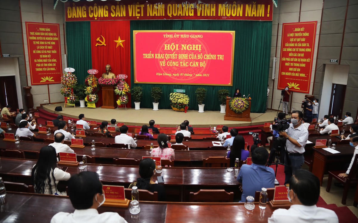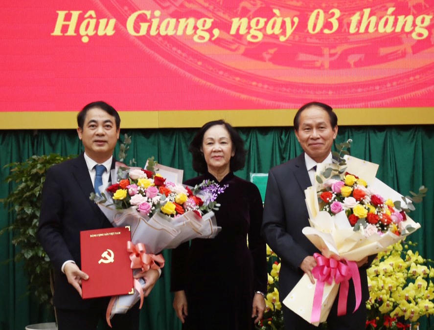 Ngày 3/7 tại Hậu Giang, Uỷ viên Bộ Chính trị, Trưởng Ban Tổ chức Trung ương Trương Thị Mai, cùng Phó Chủ tịch, Tổng Thư Ký Uỷ ban Trung ương MTTQ Việt Nam Lê Tiến Châu dự buổi trao Quyết định của Bộ Chính trị về công tác cán bộ.