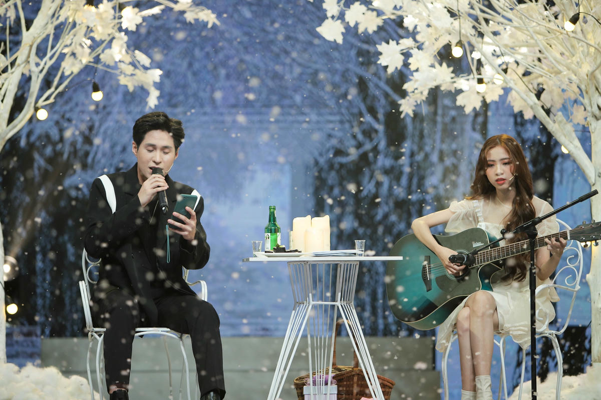 Cùng lúc đó, Linh Sa cũng mở tấm mành đang che bức hình trên sân khấu ra và nói: “Đây là bức hình còn thiếu một mảnh ghép và người đang giữ mảnh ghép còn lại cũng chính là mảnh ghép còn thiếu trong trái tim em”. Hóa ra, chàng trai cool ngầu trong mắt Linh Sa lại chính là anh chàng “nhiều muối” Otis.