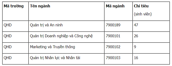 Năm 2022, Trường Quản trị và Kinh doanh – Đại học Quốc gia Hà Nội tuyển sinh 4 ngành với chỉ tiêu bổ sung cụ thể như sau: