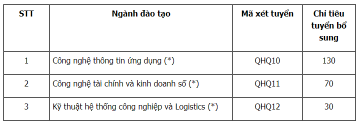 Trường Quốc tế - Đại học Quốc gia Hà Nội cũng thông báo tuyển sinh bổ sung năm 2022. Theo đó, ngành Công nghệ thông tin ứng dụng là 130 chỉ tiêu, ngành Công nghệ tài chính và kinh doanh số là 70; ngành Kỹ thuật hệ thống công nghiệp và Logistics 30 chỉ tiêu. Nguyên tắc xét tuyển là từ cao xuống thấp đến hết chỉ tiêu phân bổ từng ngành.