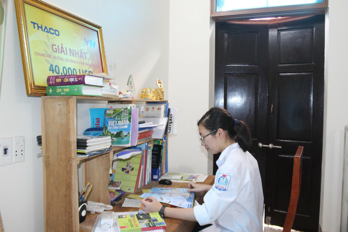 Một số thành tích “khủng” mà Hằng đã đạt được trong suốt thời gian đi học có thể kể đến như: Huy chương Bạc môn Toán, huy chương Đồng môn Tiếng Anh cấp Quốc gia, Á khoa thi tuyển đầu vào của THPT Kim Sơn A, giải 3 cấp tỉnh về môn Nghiên cứu khoa học, giải 3 cấp huyện môn Tin học trẻ, được chọn vào đội tuyển học sinh giỏi môn Sinh học của trường,..