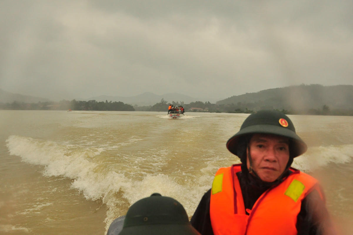 Lũ tràn về chảy xiết, cùng với sóng lớn khiến ca nô, tàu thuyền bình thường không thể tiếp cận được. Nước dâng chạm mái nhà, trong lúc này, hàng trăm tính mạng người dân nơi đây đang hết sức nguy cấp, cần phải di chuyển đến nơi an toàn.