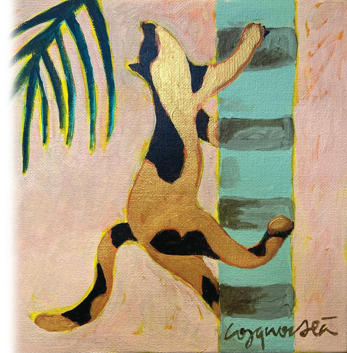Chỉ một thời gian ngắn, con mèo mướp của tôi đã ra dáng là một cậu thanh niên choai choai có bộ lông óng mượt và những móng vuốt sắc nhọn. Cái đuôi dài hay dựng đứng và xù lên to tướng mỗi lần con chó vện nhà hàng xóm đi qua. Nó nhe răng gầm gừ lông xù lên trông cũng dữ tợn ra phết, khiến con chó vện ngán ngẩm bỏ đi chơi chỗ khác. Chẳng có lũ chuột để đuổi bắt nên nó luôn dành thời gian cho việc lim dim ngủ gật dưới gốc cau, bên cạnh cái chum tương luôn ngập đầy nắng ấm. Chỗ ấy có lũ chim sẻ nâu hay la đà nhảy nhót trên những mẹt cau đang phơi. Thấy lũ sẻ ríu rít đông vui và bận rộn lại có vẻ “lấn sân” nên con mướp hay hầm hừ tỏ ý khó chịu.