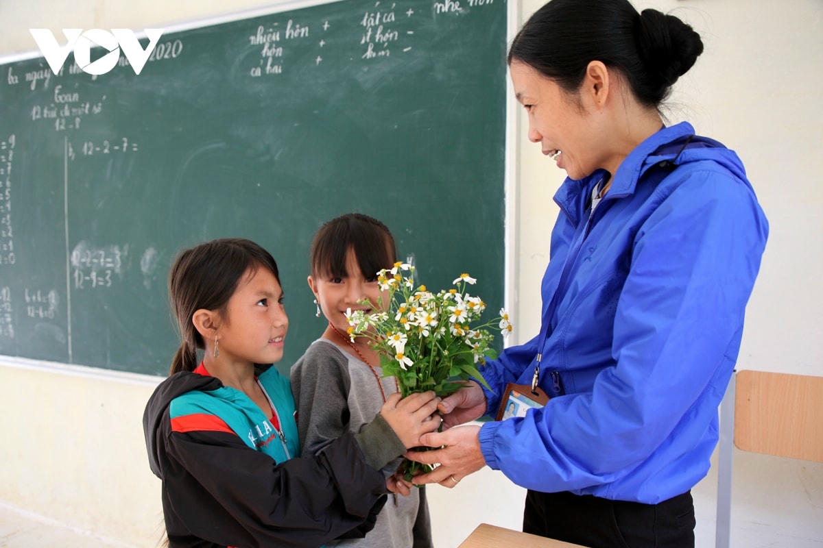"Ở đây, địa bàn xa xôi, hầu hết học sinh là dân tộc thiểu số đặc biệt khó khăn, nhiều em hoàn cảnh rất vất vả. Các em thường bỏ đi nương nhiều, nên khi đi vận động học sinh thì giáo viên cũng gặp rất nhiều khó khăn. Thấy các cô giáo nói, hôm nay sắp đến 20/11 rồi thì các em cũng đi hái hoa dại về tặng cho các cô giáo ở bản. Cảm thấy rất là vui vì các em cũng đã biết ngày đó là ngày tri ân các thầy, cô giáo", cô giáo Hương tâm sự.