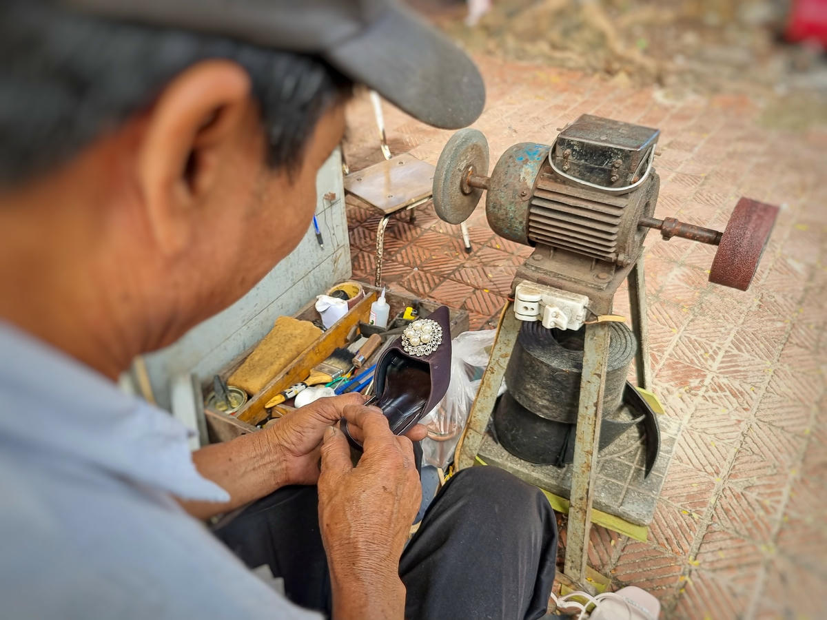 Bằng sự khéo léo và tỉ mỉ, dù cho những đôi giày, chiếc dép bị hỏng hóc nặng cỡ nào đi nữa, khi qua đôi bàn tay của ông Lợi đều trở nên như mới và chắc chắn hơn.
