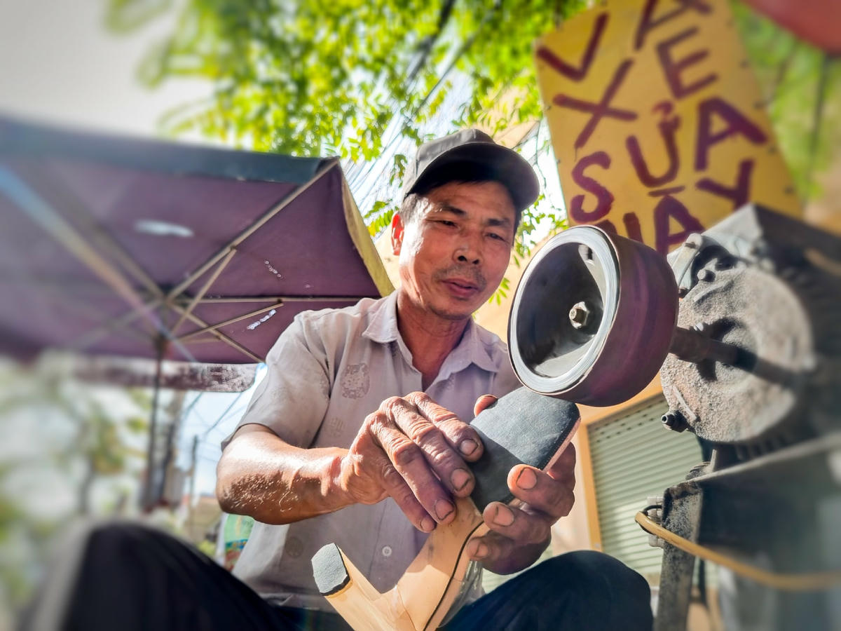 Theo chị Linh, chị thường đến đây để làm đế cao su, làm đẹp giày dép vì thấy ông Lợi làm việc cẩn thận, rất có tâm.
