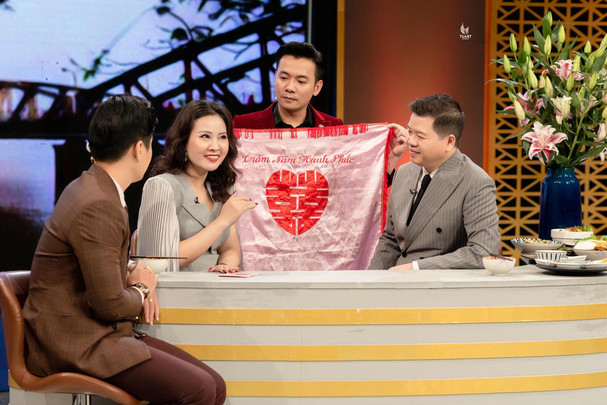 Chính vì thế, món quà đặc biệt mà Đăng Dương kỳ công chuẩn bị tặng vợ cùng lời nhắn: "Anh cảm ơn cuộc đời đã cho anh gặp em như là một định mệnh. Mãi yêu em!” đã khiến chị vô cùng cảm động: "Lấy nhau bao nhiêu năm, lần này mình bất ngờ nhất!". Trong chương trình, Kim Xuyến cũng tặng chồng một món quà gắn với công việc ca sĩ của NSƯT Đăng Dương.