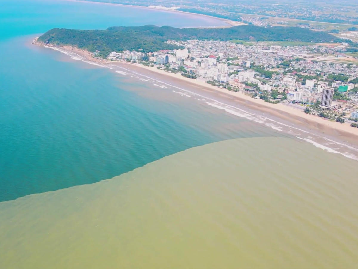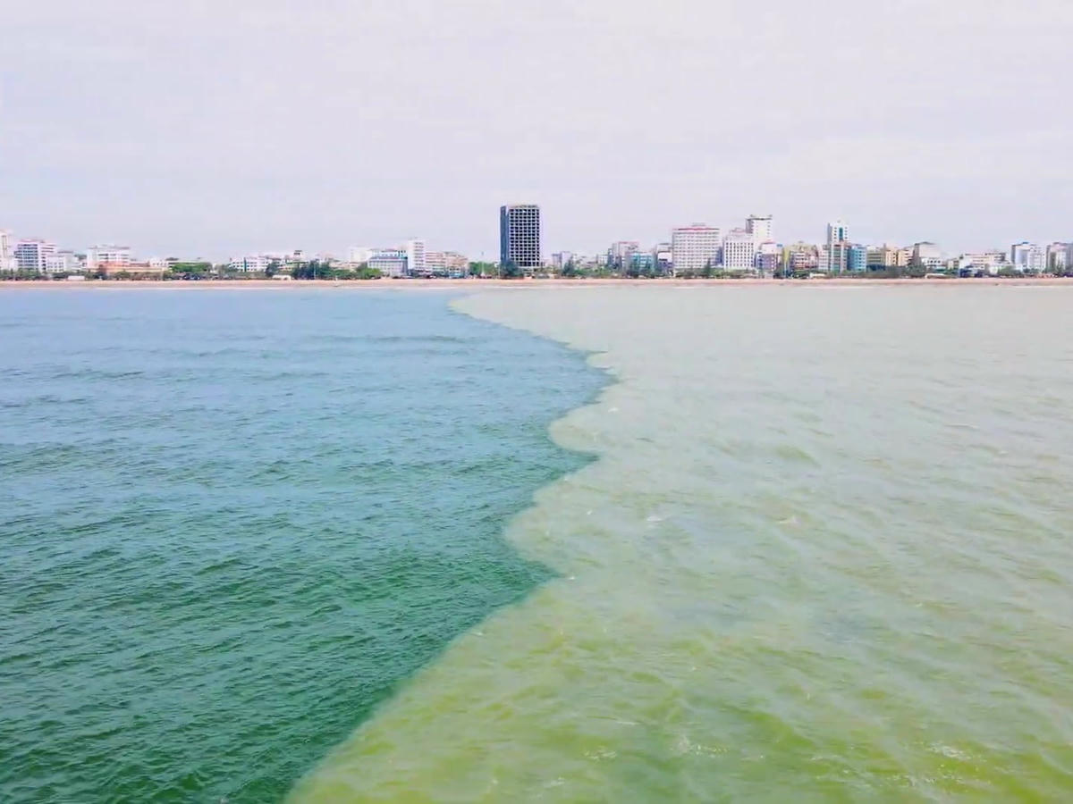 Hình ảnh mặt biển Sầm Sơn (Thanh Hóa) chia đôi thành hai màu nước xanh – vàng đục, không hòa vào nhau đang được cộng đồng mạng quan tâm, chia sẻ.