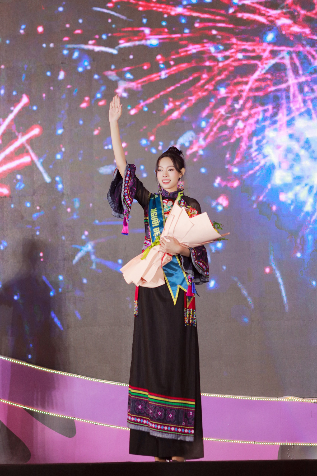 Cô gái đến từ TP Lào Cai, Trần Huyền Anh (sinh năm 2001, sinh viên Cao đẳng Cơ điện) đã đăng quang Hoa khôi Du lịch Tây Bắc 2023 trong cuộc thi chung kết tối qua tại Sa Pa.