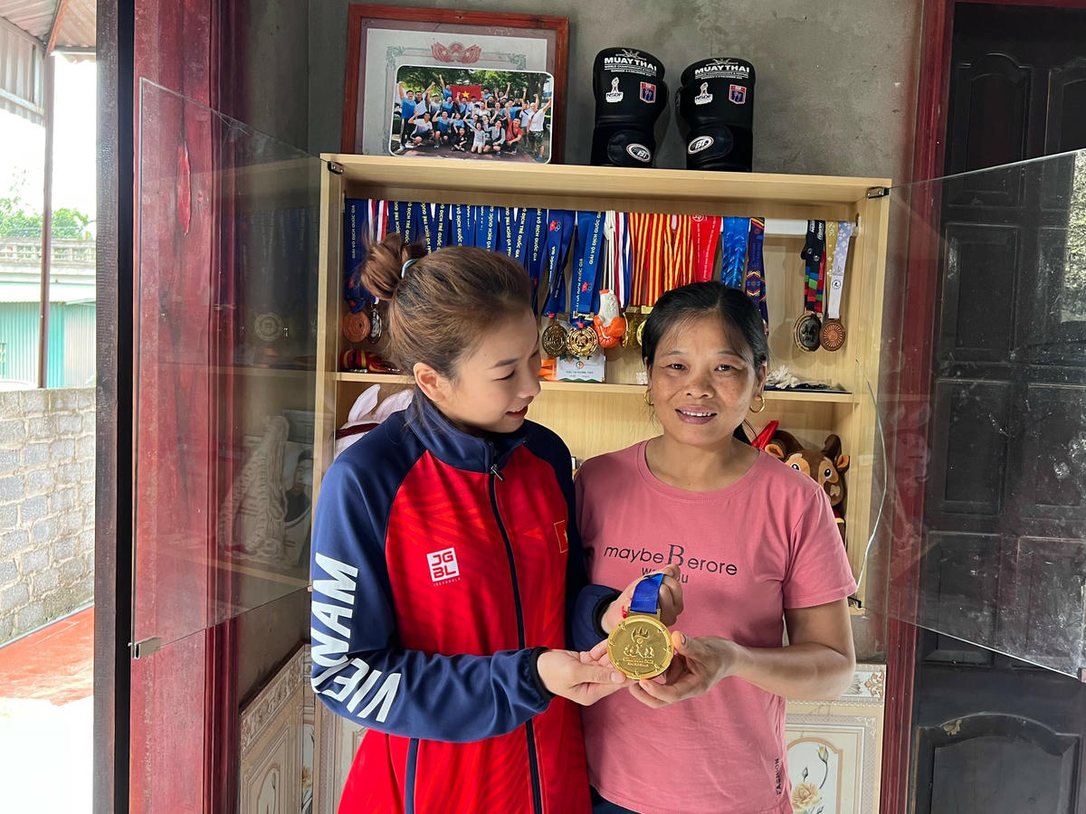 Ngước nhìn “cô gái vàng” vẻ âu yếm, bà Thìn chia sẻ thêm, năm Thuỷ học lớp 7 thì được chọn vào đội tuyển để đi thi Hội khoẻ Phù Đổng tỉnh Phú Thọ. Tuy nhiên, năm đó, môn Vovinam lại không có trong danh sách, nhưng do nhận thấy tố chất về môn Kick Boxing huấn luyện viên đã chọn Thuỷ rồi đưa về Hà Nội đào tạo.