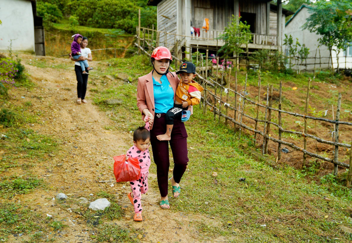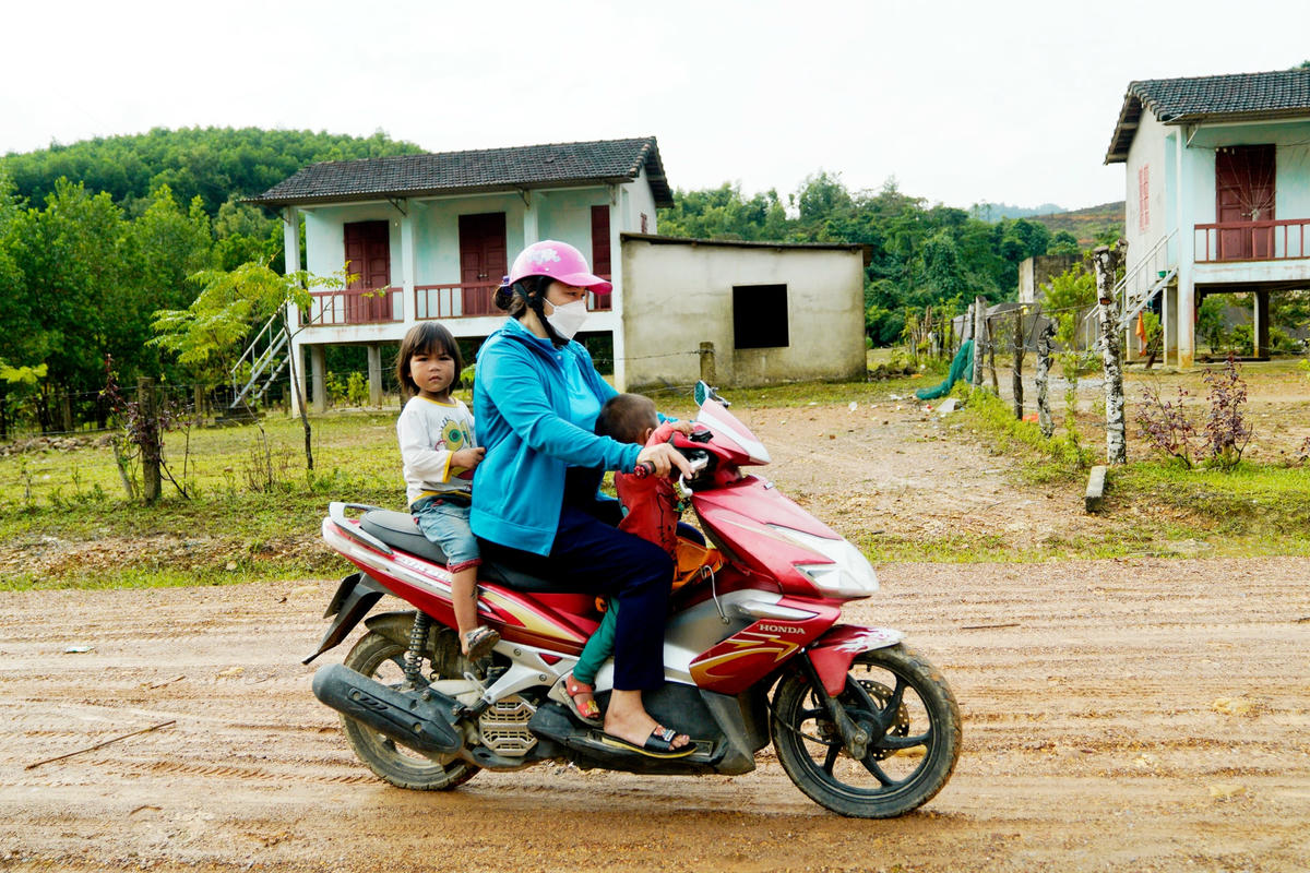 Sáng nào cũng vậy, hai cô giáo trường mầm non Hương Liên (thuộc bản Rào Tre, xã Hương Liên, huyện Hương Khê, tỉnh Hà Tĩnh) ngồi xe máy vượt cung đường dài hơn 3km để đến khu tái định cư đón các cháu dân tộc Chứt đến lớp.