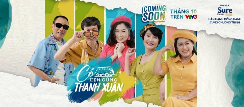 Với thông điệp “Tuổi tác chỉ ở con số, thanh xuân mãi trong tim mỗi người”, chương trình “Có hẹn cùng thanh xuân” hứa hẹn sẽ là show truyền hình thực tế “ăn khách” ngay khi ra mắt vào 22/10 tới. Chương trình do nhãn hàng Vinamilk Sure Prevent Gold và VTV đồng hành tổ chức, được phát sóng định kỳ vào 21h15 tối Chủ nhật hàng tuần trên VTV3.