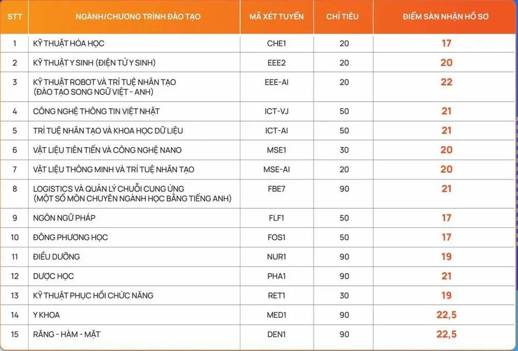 Trường Đại học Nguyễn Tất Thành cũng thông báo xét tuyển bổ sung 2023 ngành Y khoa với điểm sàn lên đến 23,5 điểm (phương thức xét điểm thi tốt nghiệp THPT). Ngành Dược học của trường này nhận hồ sơ lên xét tuyển với điểm thi tốt nghiệp THPT từ 21 điểm.
