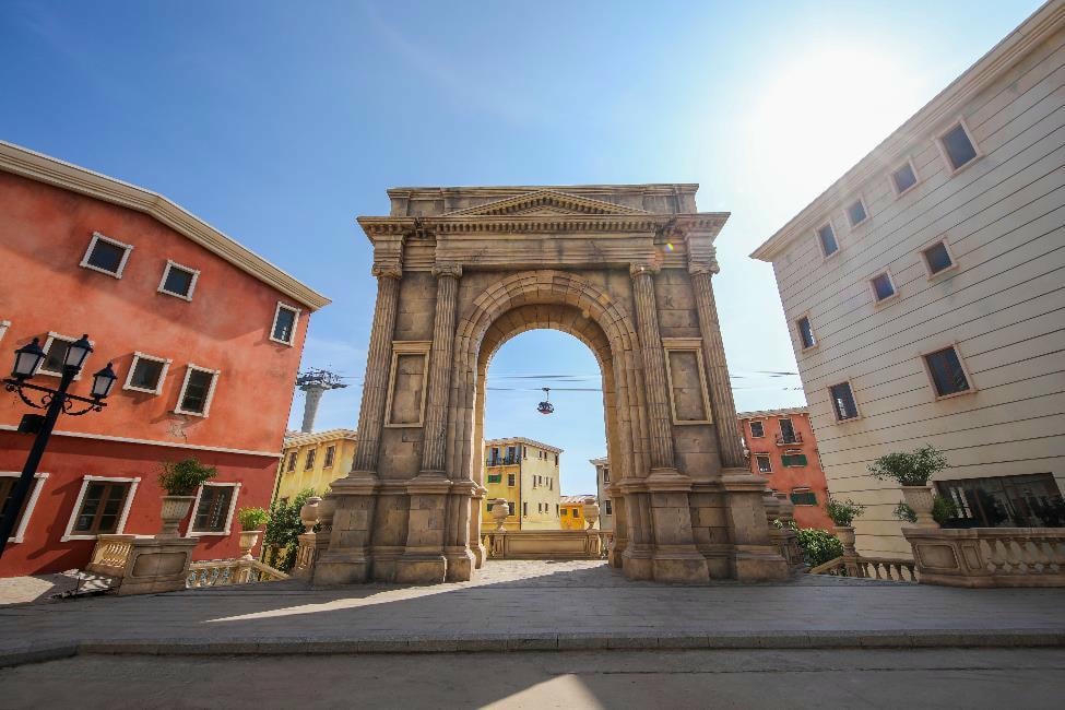 Men theo những con đường nhỏ ngập tràn hoa giấy là biểu tượng Khải Hoàn Môn tái hiện lại công trình nổi tiếng bậc nhất tại kinh đô thời trang Paris. Công trình được tái hiện kỳ công với chiều cao 10,5 m.