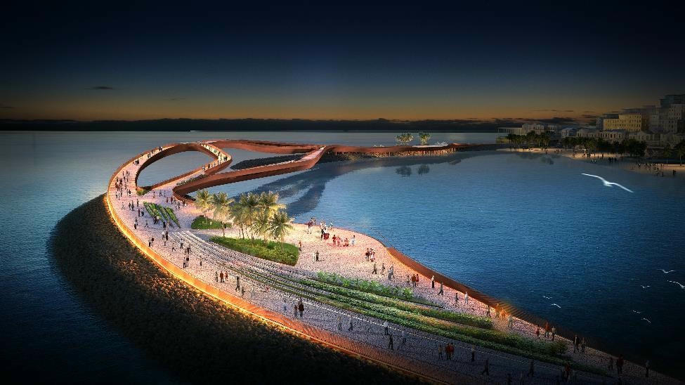 Điểm nhấn hút khách tới thị trấn Địa Trung Hải, gia tăng giá trị thưởng lãm cho du khách là công trình biểu tượng Cầu Hôn - Kiss Bridge. Lấy cảm hứng từ chuyện tình Ngưu Lang - Chức Nữ, cây cầu như một dải lụa giữa đại dương lam ngọc gồm 2 phần vươn mình ôm trọn bờ cát trắng, hướng đến nhau, hợp vào làm một thể thống nhất nhưng không chạm nhau, ví như cảm giác rung động của hai người yêu nhau trước Nụ hôn lãng mạn. Điều đặc biệt hơn, mỗi năm, sẽ chỉ có một khoảnh khắc duy nhất mặt trời lặn vào đúng điểm giao của Cầu Hôn, nối liền 2 mũi cầu, tạo nên một khung cảnh vô cùng mãn nhãn, chắc chắn sẽ thu hút hàng triệu lượng khách tới đây tham quan chiêm ngưỡng.