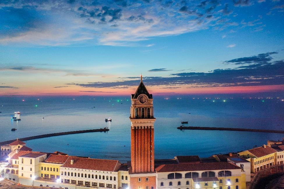 Tâm điểm của thị trấn là Tháp đồng hồ cao 75 m đỏ gạch hướng thẳng ra đại dương. Được lấy cảm hứng từ tháp chuông biểu tượng Ý St. Mark's Campanile trứ danh của Italia, Tháp đồng hồ Central Village mô phỏng ngọn hải đăng trước biển, đem đến cho du khách mỹ cảnh ngắm trọn đại dương lộng gió.