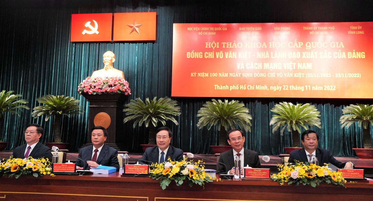 Ngày 22/11, tại Hội trường Thành ủy TP HCM, Ban Tuyên giáo Trung ương đã phối hợp cùng Văn phòng Chính phủ, Học viện Chính trị Quốc gia Hồ Chí Minh, Thành ủy TP HCM và Tỉnh ủy Vĩnh Long tổ chức Hội thảo khoa học cấp quốc gia với chủ đề “Đồng chí Võ Văn Kiệt - Nhà lãnh đạo xuất sắc của Đảng và cách mạng Việt Nam” nhân kỷ niệm 100 năm ngày sinh cố Thủ tướng Võ Văn Kiệt (23/11/1922 - 23/11/2022).