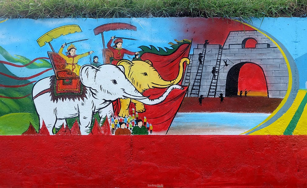 Hình ảnh những bức tường khô tróc, cũ kỹ, rậm rạp cỏ dọc tuyến đường quê Phúc Thọ nay đã được thổi hồn nhờ những bức bích họa. Tranh tường không chỉ làm cho nơi đây sống động hơn, có một sắc diện mới mà còn giúp người dân thêm yêu quê hương mình hơn...