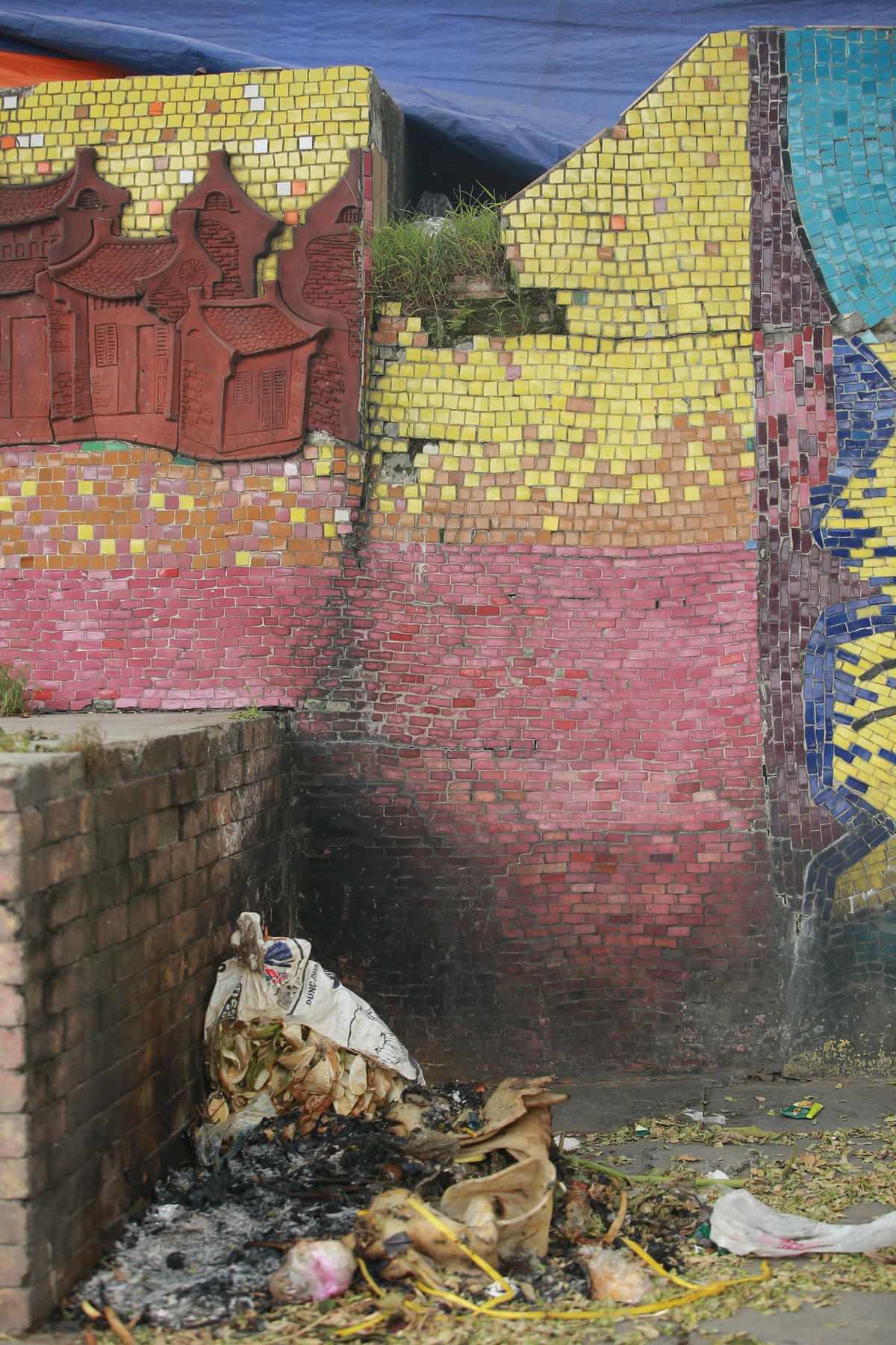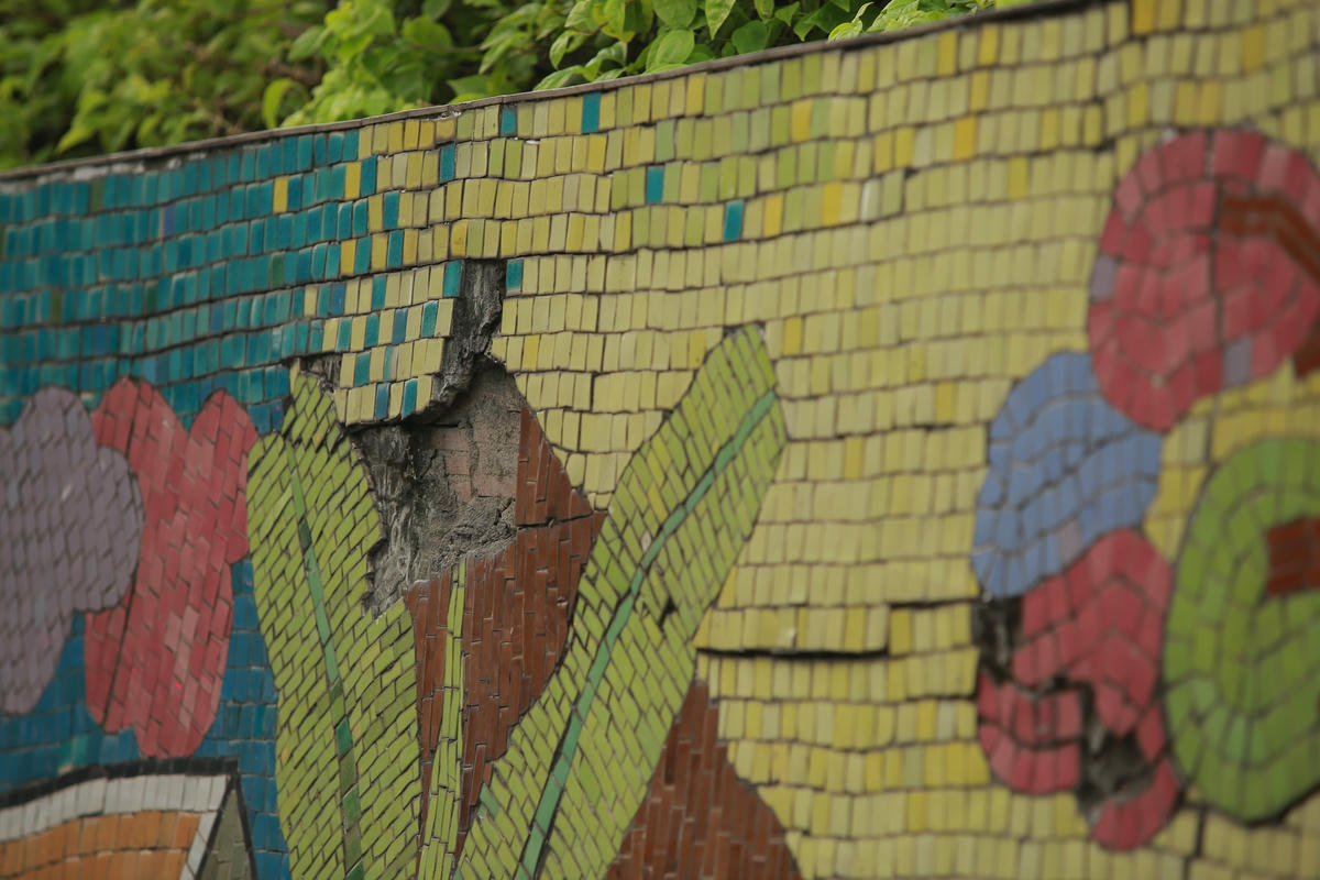 Sau gần 4 năm, bức tranh gốm sứ tái hiện dòng chảy lịch sử Việt Nam với nhiều hoa văn đặc trưng, tiêu biểu… đã và đang xuất hiện nhiều điểm hư hỏng, xuống cấp, các mảnh gốm bị bong tróc nham nhở, những vết nứt kéo dài. Tình trạng người dân đốt rác quanh khu vực gây ố đen, mất thẩm mỹ.