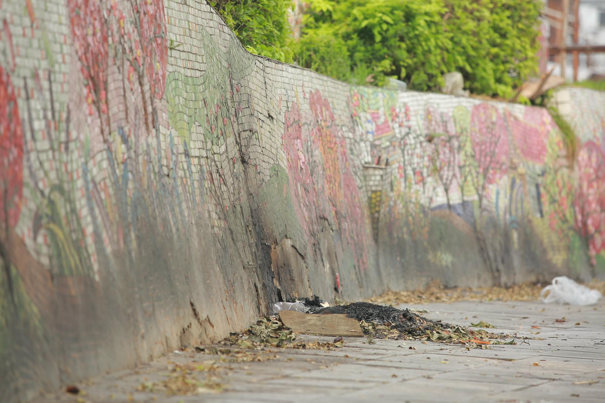 Hằng năm, bức tranh gốm sứ dài nhất thế giới vẫn được các cơ quan quản lý bảo trì đều đặn, những vết nứt, bong tróc vẫn thường xuyên được chắp vá. Tuy nhiên có một “vết thương” mà các cơ quan chức năng đành phải “bó tay”, xuất phát từ ý thức của mỗi người.