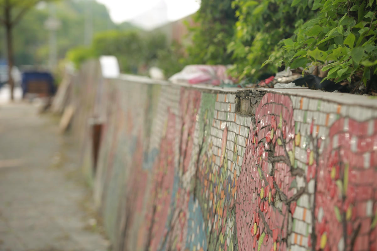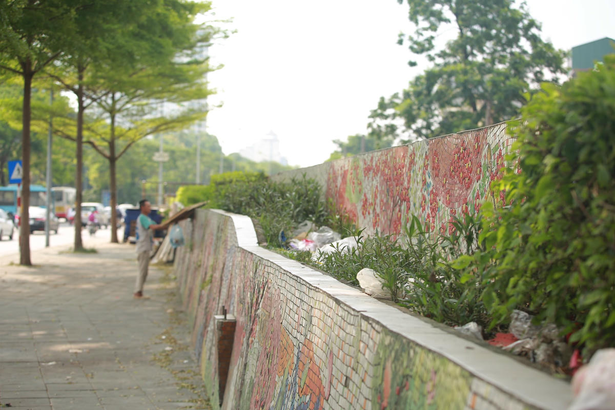 “Tôi cảm thấy thất vọng mỗi lần đi qua “con đường gốm sứ" của Hà Nội, một không gian công trình mang giá trị văn hóa như vậy mà bốc mùi hôi hám, nhếch nhác, những mảng gốm lắp ghép thì bong tróc và vỡ vụn, thật là đáng tiếc”, vừa quan sát những mảng bong tróc trên tường ông Lân vừa nói.