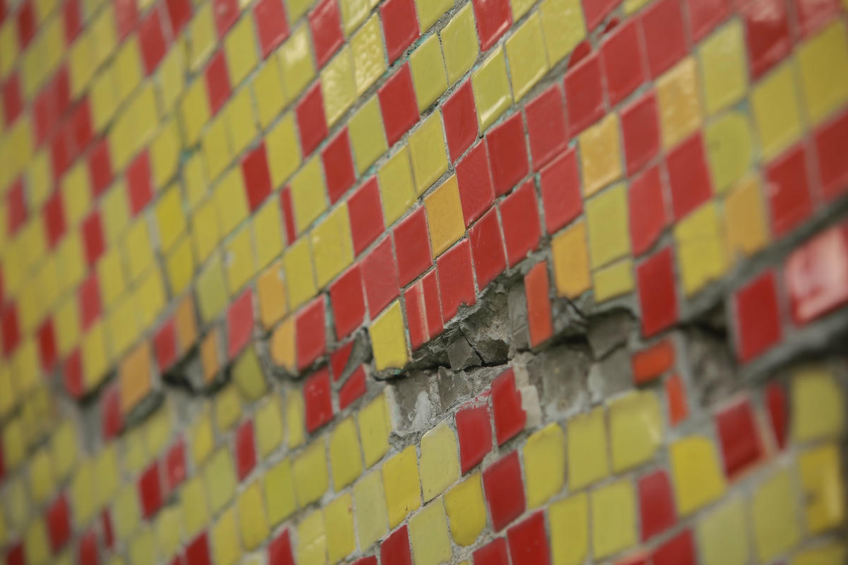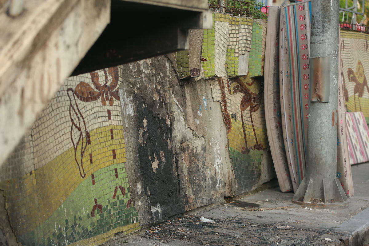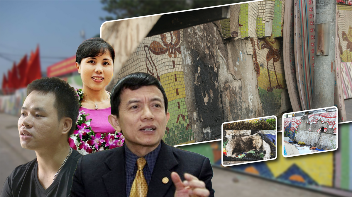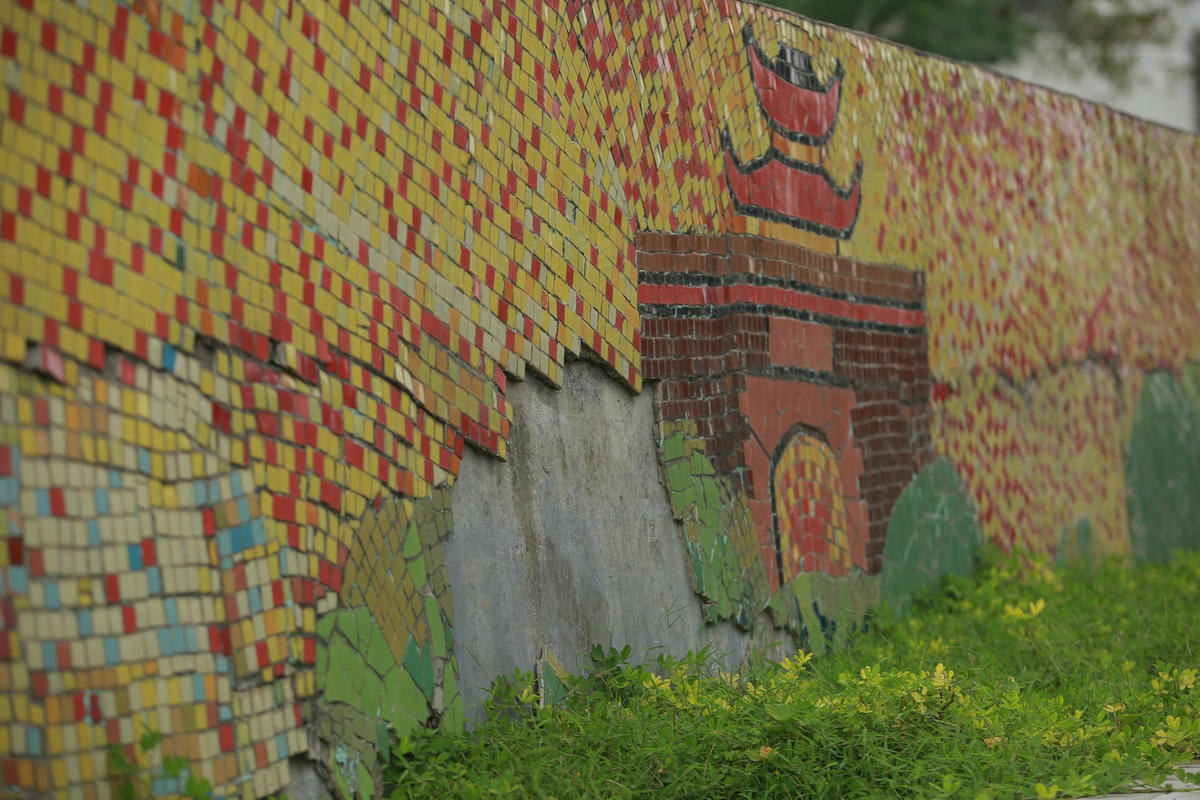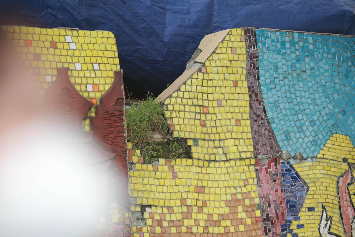 Tuy nhiên, do nhiều nguyên nhân, công trình nghệ thuật đặc biệt này đang có dấu hiệu xuống cấp. Gốm ghép bị bong tróc, rơi rụng từng mảng, bức tường xây thêm bị nứt vỡ. Tình trạng tranh ghép nhếch nhác, ố vàng, bốc mùi xú uế xuất hiện ở nhiều đoạn khiến người dân không khỏi xót xa, tiếc nuối cho một công trình nhiều ý nghĩa.