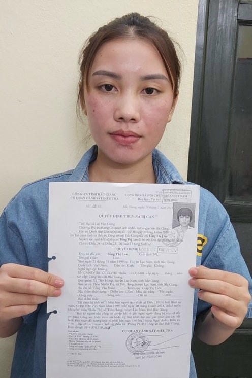 Theo đó, ngày 16/7/2023, tại phường Đông Thọ, thành phố Thanh Hóa (tỉnh Thanh Hóa), Phòng Cảnh sát hình sự Công an tỉnh Bắc Giang phối hợp với các đơn vị nghiệp vụ Công an tỉnh Thanh Hóa bắt giữ đối tượng truy nã đặc biệt nguy hiểm là Tống Thị Lan (24 tuổi, trú tại tổ dân phố Nhiêu Thị, thị trấn Đồi Ngô, huyện Lục Nam, tỉnh Bắc Giang) theo Quyết định truy nã của Cơ quan Cảnh sát điều tra Công an tỉnh Bắc Giang về tội “Mua bán người” và Cơ quan Cảnh sát điều tra Công an huyện Lục Nam về tội “Trộm cắp tài sản”.