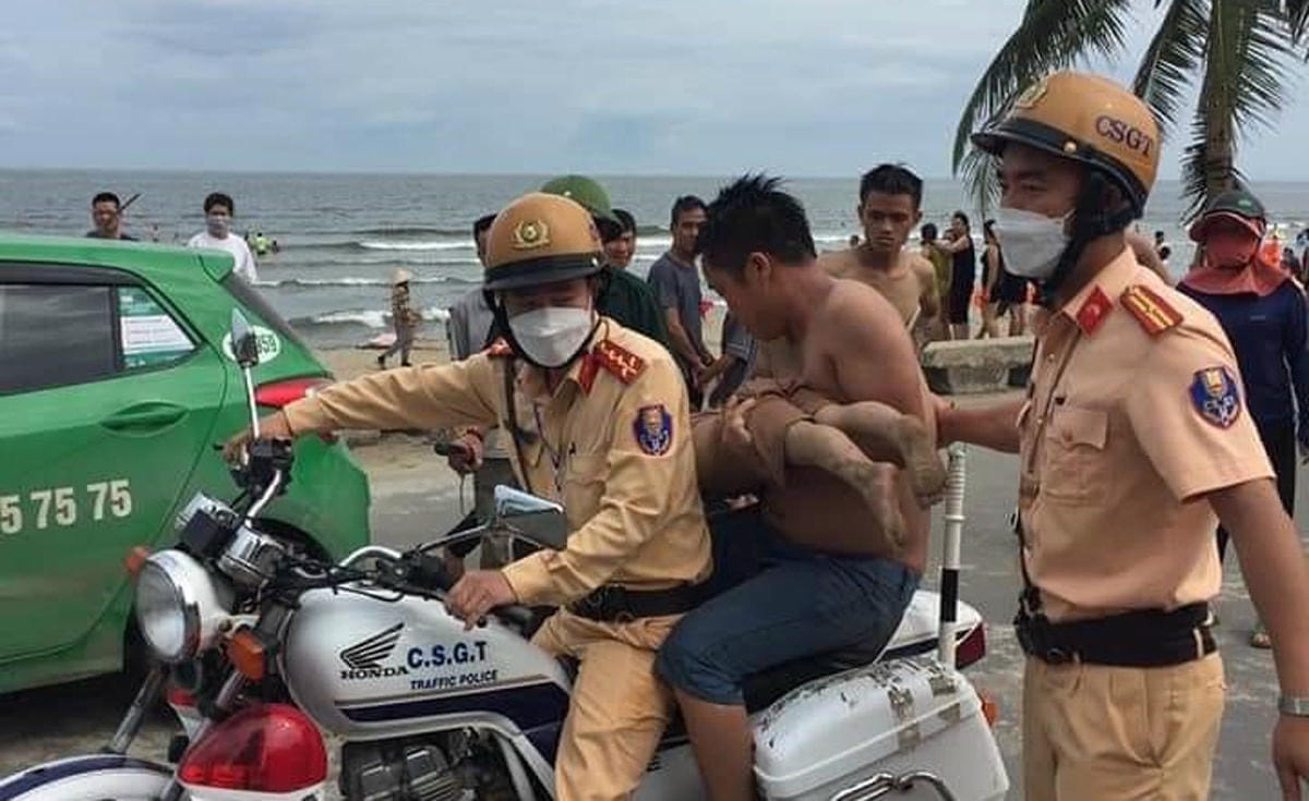 Thấy một cháu bé bị ngạt nước đang được người dân đưa lên bờ để đi cấp cứu, hai chiến sĩ Công an TP Sầm Sơn (Thanh Hoá) đã không ngần ngại dùng xe đặc chủng để đưa đi, đồng thời liên tục hú còi, giúp rút ngắn quãng đường từ bãi tắm đến bệnh viện.