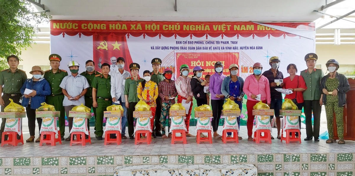 Trước đó, (ngày 16/8), Cơ quan Ủy ban Kiểm tra Đảng ủy Công an tỉnh Bạc Liêu phối hợp Công an huyện Hòa Bình trao tặng hơn 170 phần quà cho các hộ gia đình có hoàn cảnh khó khăn tại xã Vĩnh Hậu, huyện Hòa Bình. Tổng giá trị các phần quà trị giá gần 53 triệu đồng, số tiền này được Cơ quan Ủy ban Kiểm tra Đảng ủy, Công an tỉnh vận động cán bộ, chiến sĩ đơn vị và các mạnh thường quân đóng góp hỗ trợ.