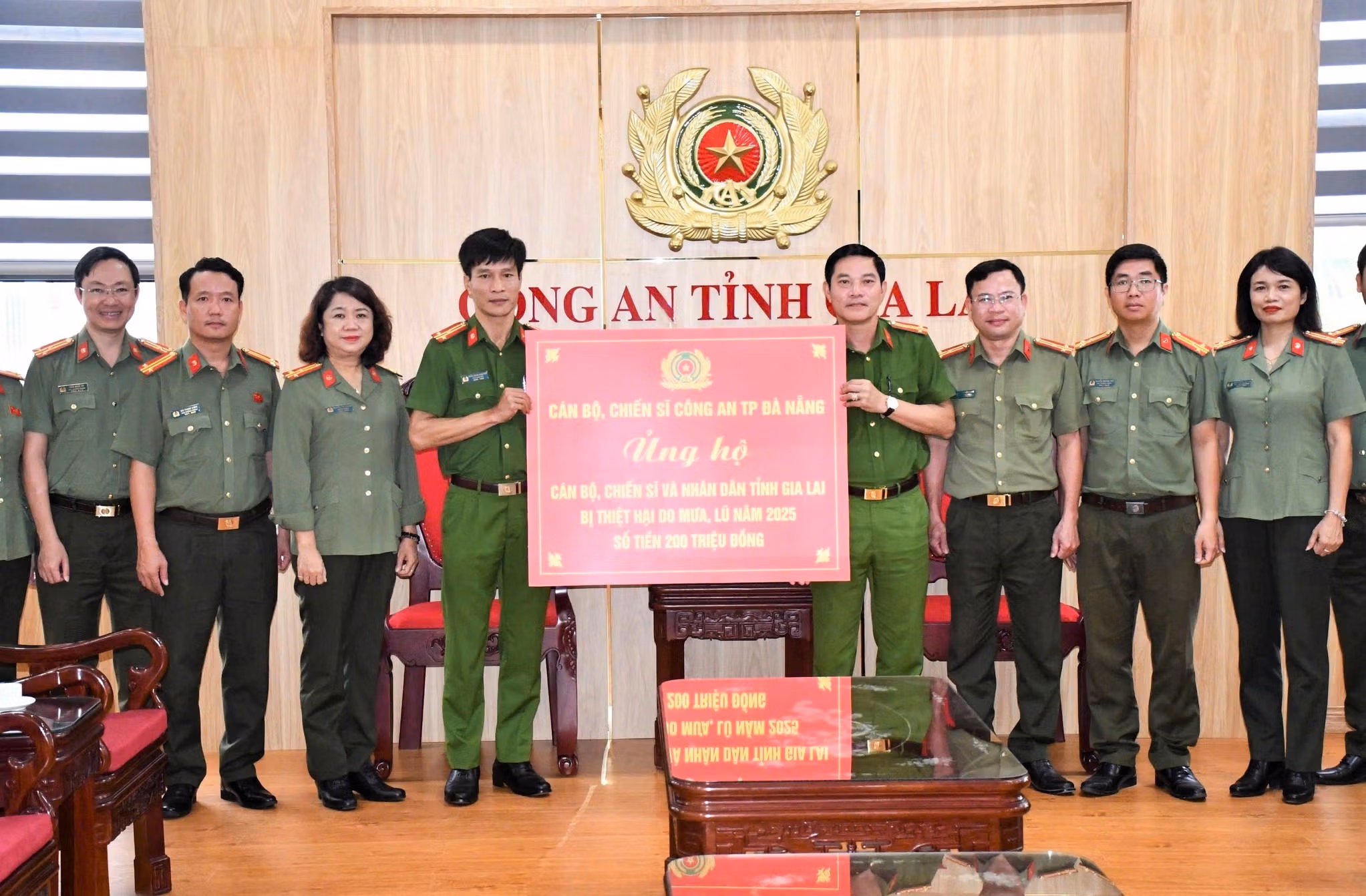 Theo đó, chung tay cùng địa phương khắc phục hậu quả thiên tai, cán bộ chiến sĩ Công an TP Đà Nẵng đã ủng hộ và trao tặng 200 triệu đồng nhằm hỗ trợ bà con và cán bộ chiến sỹ bị ảnh hưởng của đợt mưa bão vừa qua sớm ổn định cuộc sống.
