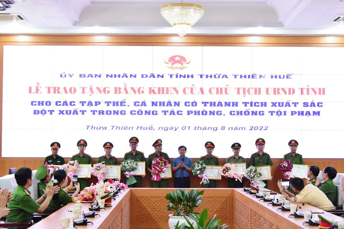Với thành tích trên, Chủ tịch UBND tỉnh Thừa Thiên - Huế đã có Quyết định khen thưởng đột xuất cho 4 tập thể và 9 cá nhân vì đã có có thành tích xuất sắc trong công tác phòng, chống tội phạm.