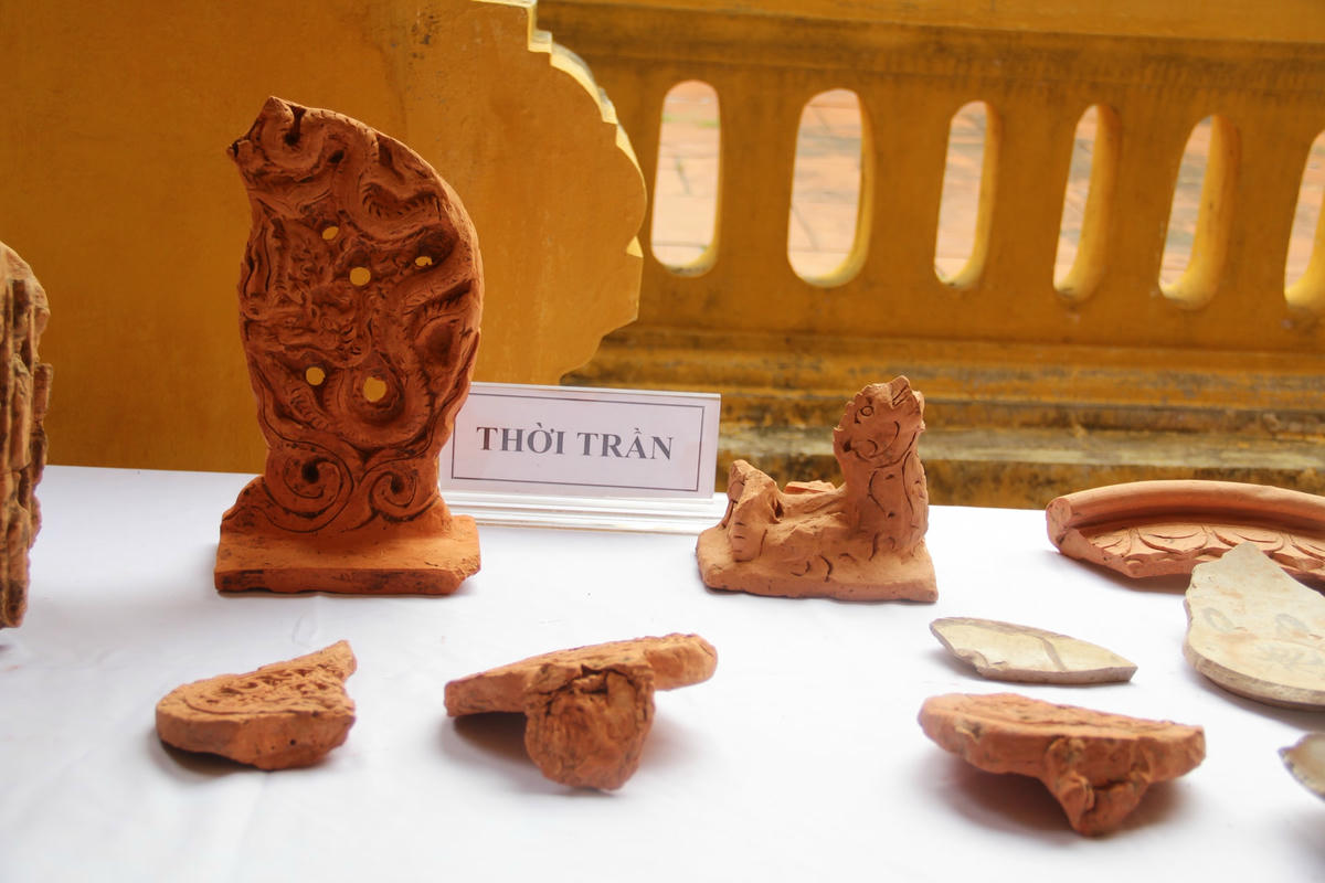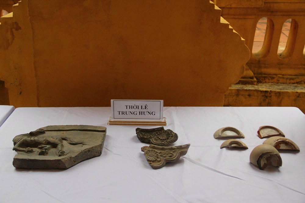 Quá trình khai quật đã tìm thấy hàng nghìn hiện vật khảo cổ gồm các loại gạch, ngói, đồ gốm men, đồ sành, đồ đất nung, đồ kim loại, đồ đá….Tiêu biểu nhất là mảnh mô hình tháp đất nung thời Trần. Các di vật là các loại vật liệu xây dựng Hoàng cung Thăng Long, đồ dùng sinh hoạt Hoàng cung thời kỳ Thăng Long và một số ít thuộc thời tiền Thăng Long.
