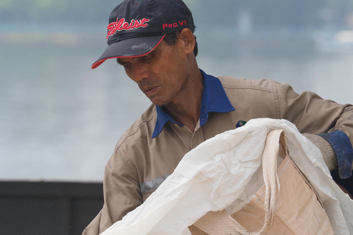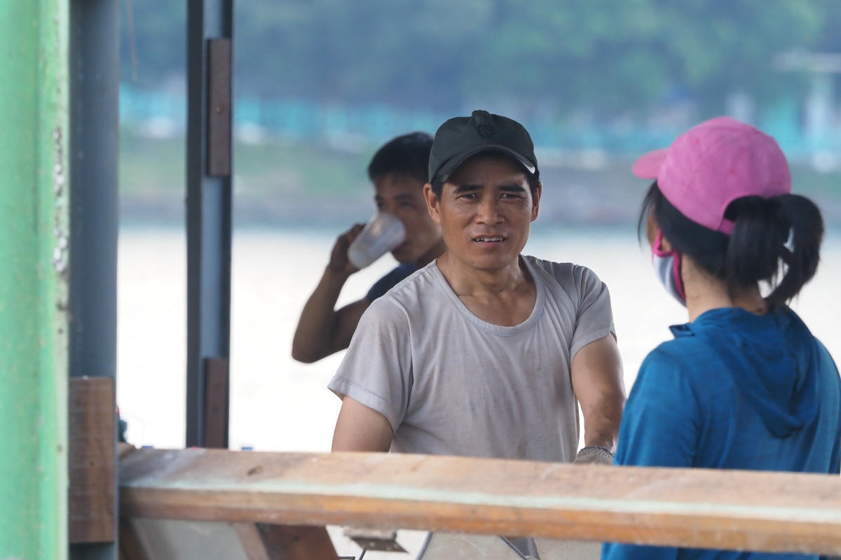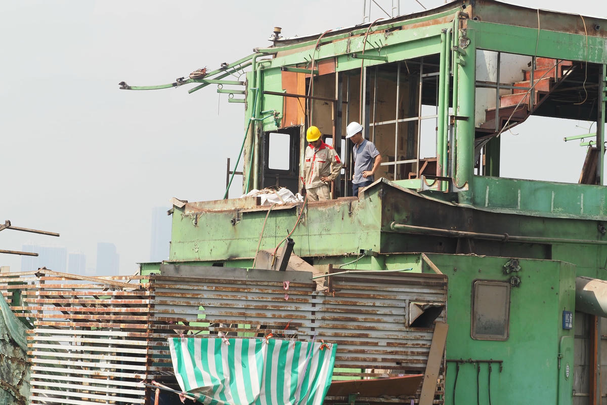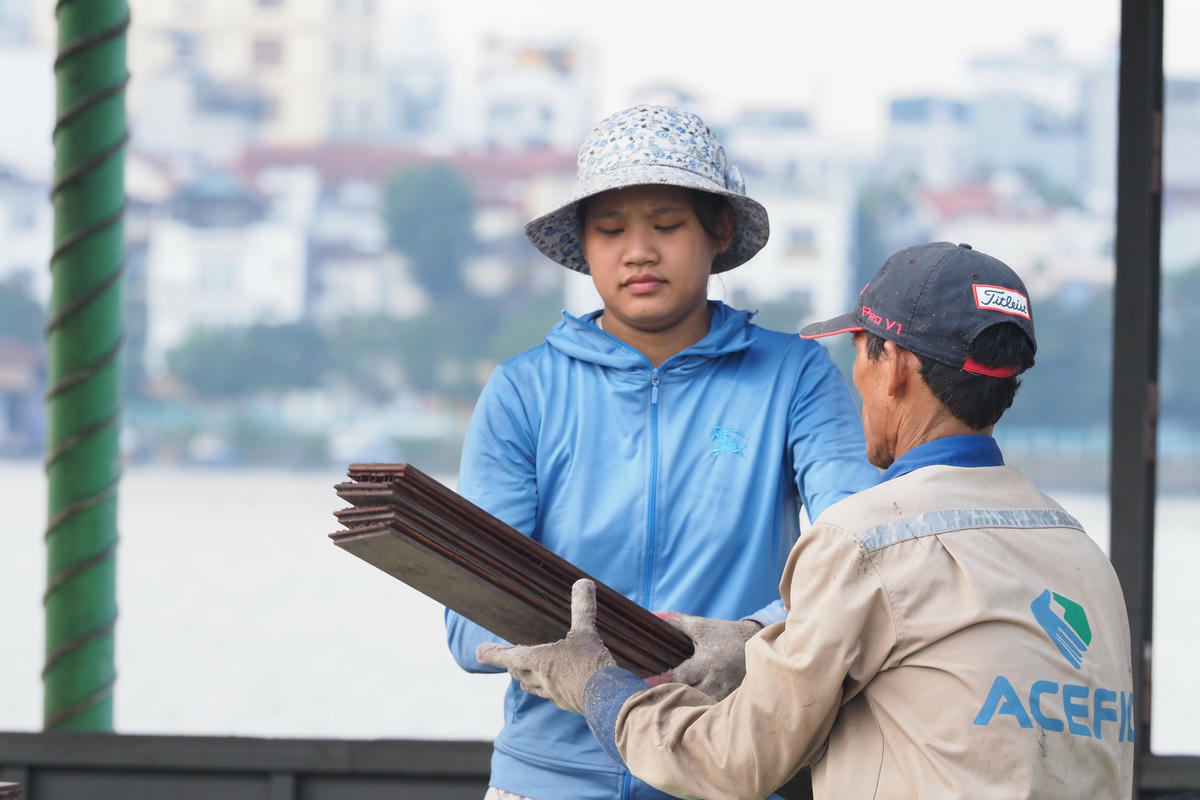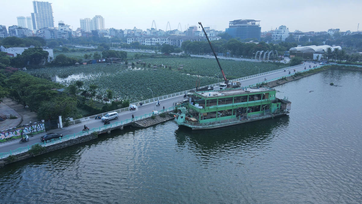 Công nhân đội nắng tháo dỡ con tàu cuối cùng ra khỏi Hồ Tây