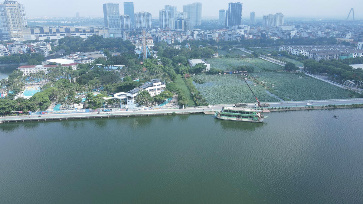 Theo ghi nhận của PV Báo Đại Đoàn Kết Online, dưới tiết nắng nóng, oi bức hàng chục công nhân nhễ nhại mồ hôi tháo dỡ chiếc du thuyền mang tên Potomac dài khoảng 40 m, trọng lượng 80 tấn ở Hồ Tây.Du thuyền này thuộc Công ty Cổ phần Sông Potomac, là tài sản đang thi hành án.Thời gian qua, lực lượng chức năng quận Tây Hồ đã phối hợp với đơn vị thi hành án trong việc tuyên truyền, vận động doanh nghiệp di chuyển con tàu ra khỏi Hồ Tây.Trước đó, vào năm 2015, TP Hà Nội chỉ đạo quận Tây Hồ rà soát, yêu cầu các đơn vị có phương tiện thủy nội địa cũ nát không sử dụng di chuyển khỏi khu vực Hồ Tây.Đến năm 2017, TP Hà Nội yêu cầu chấm dứt hoàn toàn hoạt động kinh doanh dịch vụ, thể thao du lịch, vui chơi giải trí, nuôi trồng khai thác thủy sản ở Hồ Tây.Theo một công nhân tháo dỡ thuyền chia sẻ, thời tiết Hà Nội thời điểm này khá nắng nóng, việc tháo dỡ, di chuyển tàu ra khỏi Hồ Tây cũng khá khó khăn. Bởi con tàu này có trọng lượng khá lớn."Dù công việc khá nhiều nhưng dự kiến, việc tháo dỡ du thuyền Potomac cuối cùng này sẽ hoàn thành trước ngày 15/7", công nhân này cho hay.Khoảng 80% bộ phận trên du thuyền sẽ được tận dụng lại. Vì vậy, trong quá trình cắt dỡ, công nhân sẽ chú ý không cắt vào những trục xương chính để sau này lắp ghép được nhanh chóng, đảm bảo.Sau khi hoàn thành việc di dời các tàu, thuyền trên Hồ Tây theo chỉ đạo của TP Hà Nội, quận Tây Hồ sẽ triển khai loạt giải pháp để bảo đảm môi trường nước như nạo vét bùn lòng hồ, sục khí, thả bè thủy sinh... để từng bước làm sạch nước Hồ Tây.