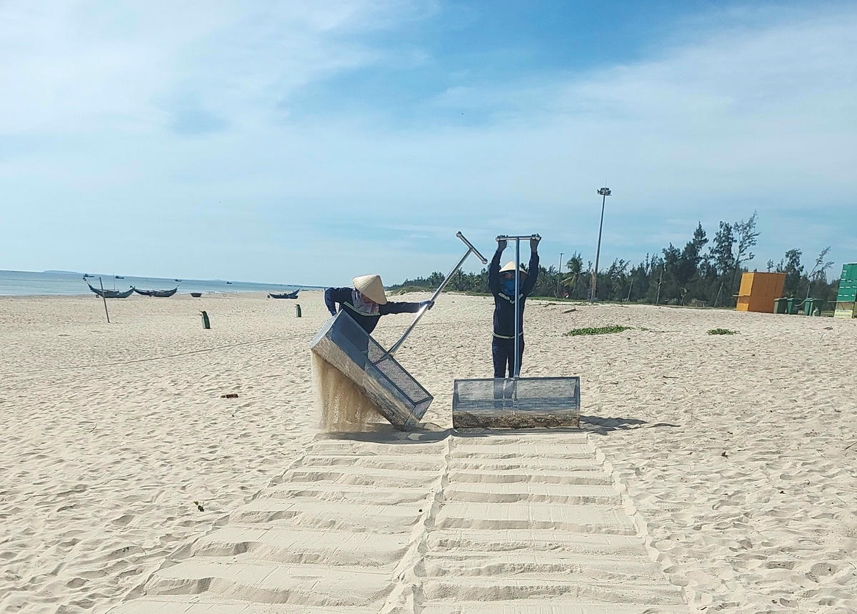 Ghi nhận của chúng tôi, từ 6h đến 12h, ngày 2/9, các công nhân vệ sinh môi trường của Công ty CP Môi đường Đô thị Quảng Nam vẫn cần mẫn làm việc. Họ dùng các dụng cụ như: xe đạp, xe thùng, chổi quét đi dọc các tuyến đường như: Trần Phú, Nguyễn Chí Thanh, Trần Hưng Đạo, Bạch Đằng;… Quảng trường 24/3, thuộc TP Tam Kỳ dọn vệ sinh và họ còn xuống biển Tam Thanh thu gom các loại rác thải ở bãi tắm. Sau đó mọi người bỏ rác lên xe thùng vận chuyển đến nơi tiêu thụ để làm sạch cho các tuyến đường phố, bãi biển.