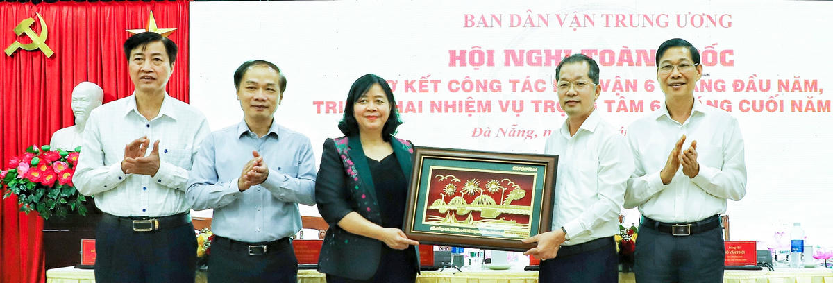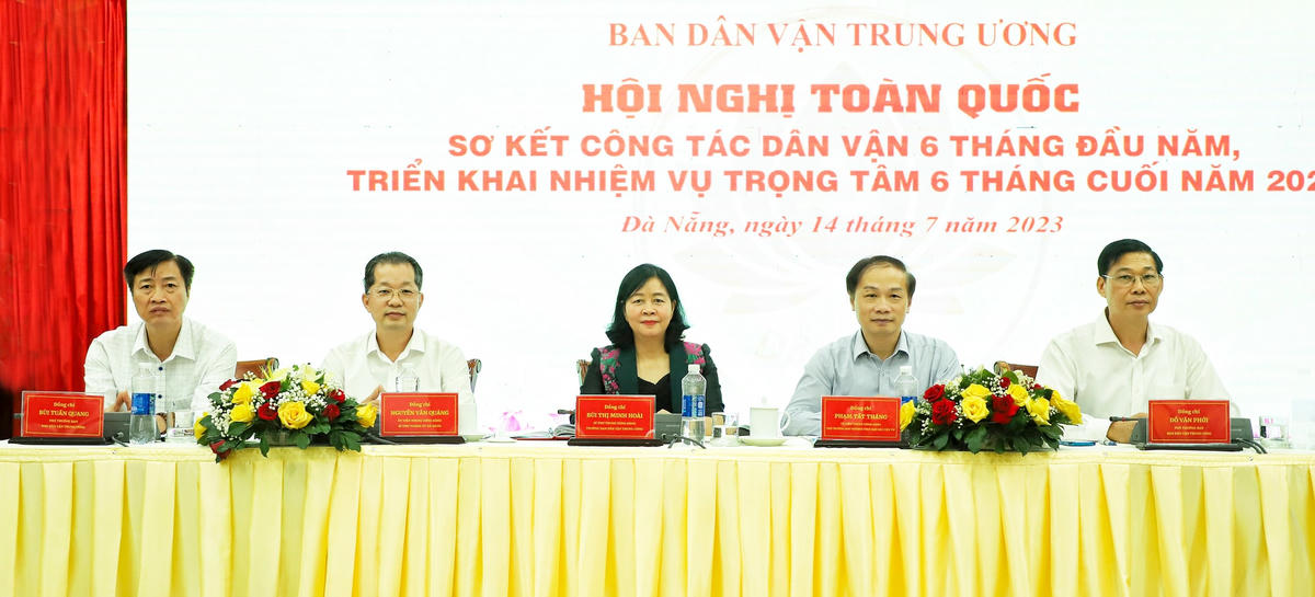 Bí thư Trung ương Đảng, Trưởng Ban Dân vận Trung ương Bùi Thị Minh Hoài; Phó Trưởng ban Thường trực Ban Dân vận Trung ương Phạm Tất Thắng; Ủy viên Trung ương Đảng, Bí thư Thành ủy, Trưởng đoàn đại biểu Quốc hội TP Đà Nẵng Nguyễn Văn Quảng; Phó Trưởng ban Dân vận Trung ương Đỗ Văn Phới và Phó Trưởng ban Dân vận Trung ương Bùi Tuấn Quang, đồng chủ trì Hội nghị.