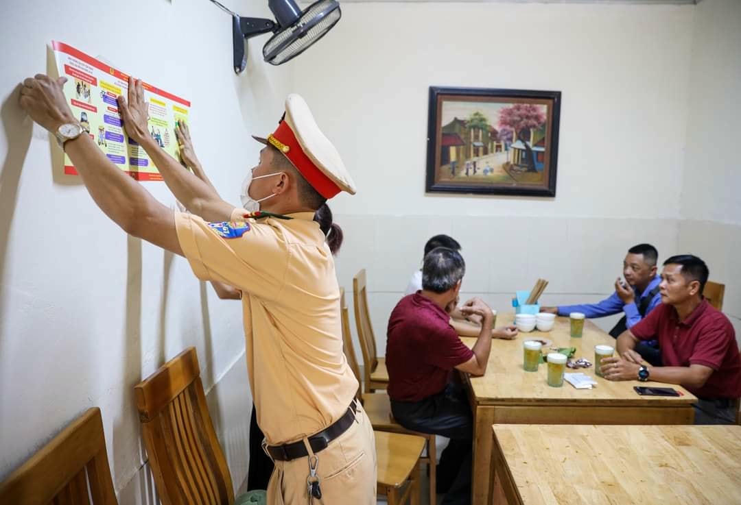 Nhằm nâng cao ý thức chấp hành Luật Giao thông đường bộ, ngày 25/7, Đội CSGT đường bộ số 6 (Phòng CSGT Công an TP Hà Nội) dán áp phích "đã uống rượu bia không lái xe" ở các hàng quán trên địa bàn quận Nam Từ Liêm và Cầu Giấy.