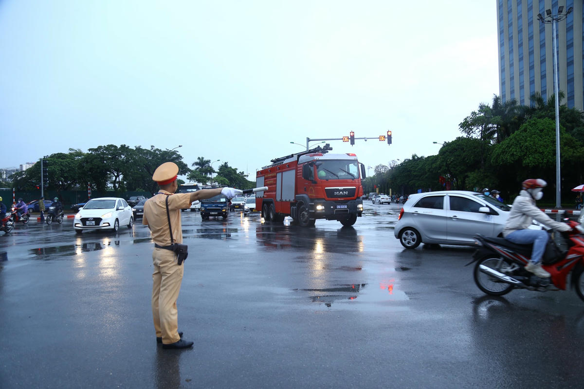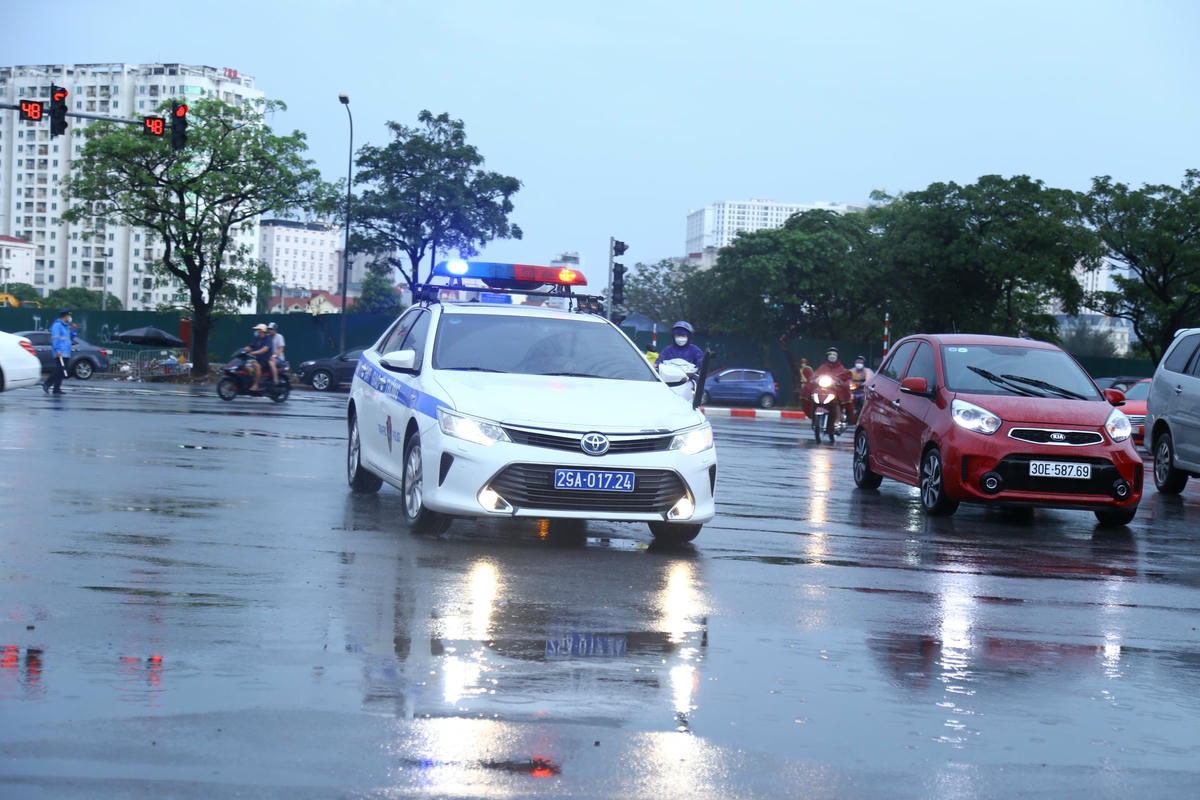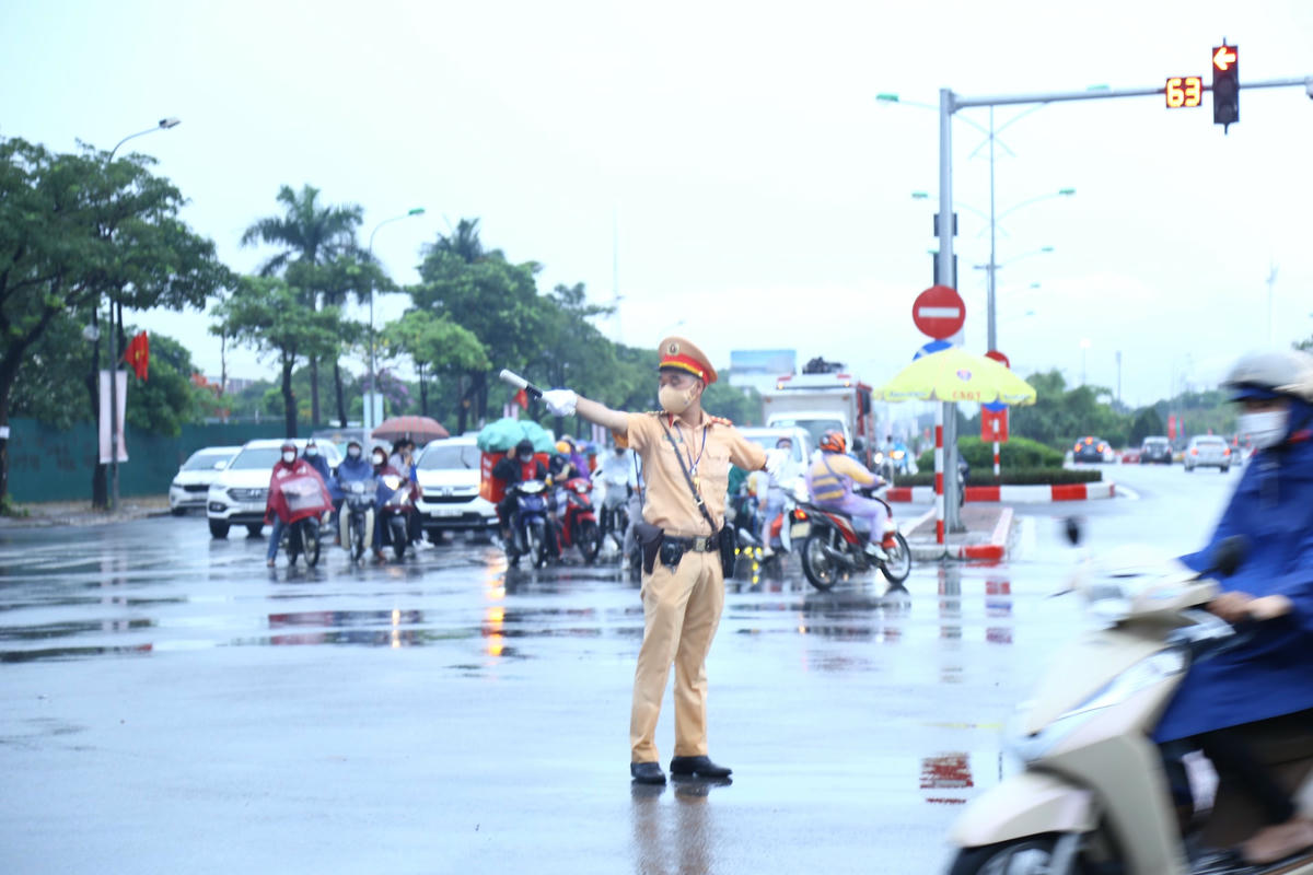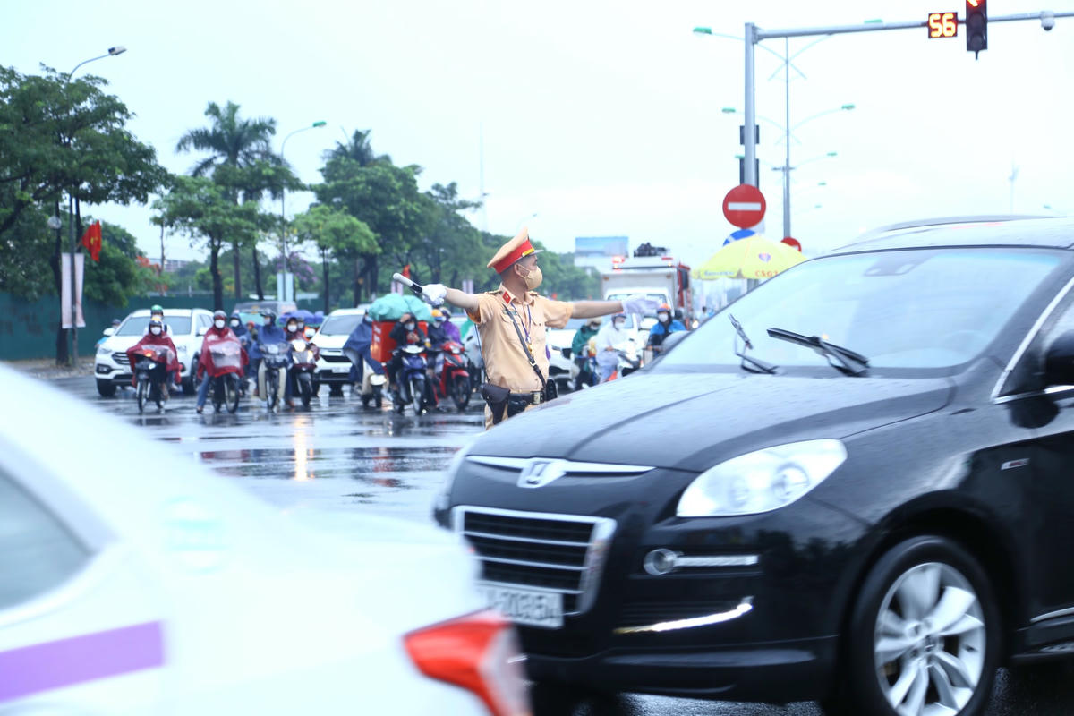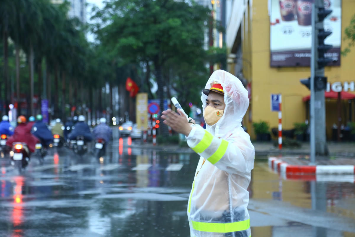 CSGT Hà Nội: 'Đội mưa' phân luồng giao thông trước lễ khai mạc SEA Games 31