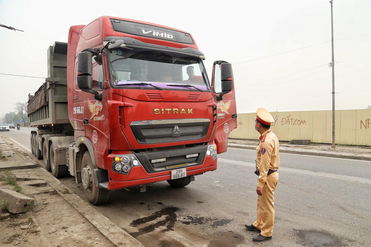 Sáng 24/3, Đội CSGT đường bộ số 12 (Phòng CSGT Công an TP Hà Nội) đã tuần tra kiểm soát xử lý xe vi phạm quá tải trọng. Đặc biệt, thay vì cơi nới thành thùng bị xử nghiêm, phạt nặng thì các trường hợp vi phạm đều tự ý lắp đặt bạt cánh hai bên thành thùng để chở quá tải.
