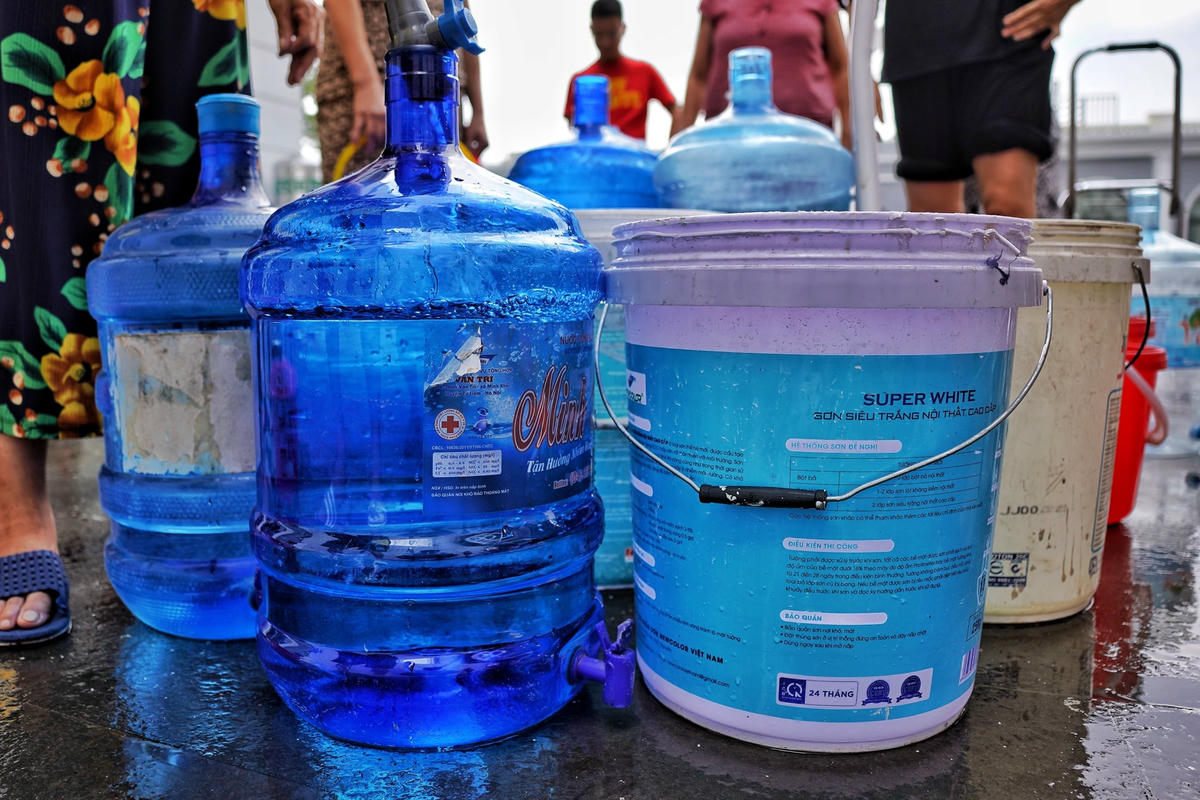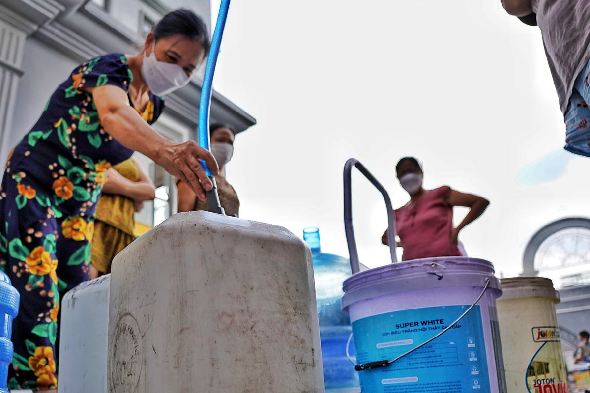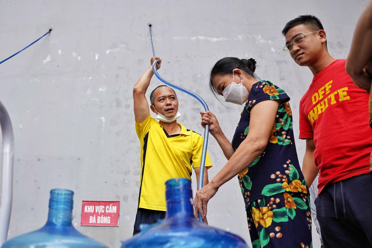 Theo ghi nhận của PV Báo Đại Đoàn Kết Online, sau khi bị nhà máy nước sạch sông Đà dừng cấp nước, hiện cư dân chung cư Hateco Apollo Xuân Phương (phường Phương Canh, quận Nam Từ Liêm) đang sống trong cảnh khổ sở xếp hàng, lấy từng can nước về sử dụng.Theo ông Nguyễn Hoàng Tùng, Ban quản lý toà nhà Hateco, để giải quyết khó khăn, Ban quản lý tòa nhà đã cho đặt 4 téc nước, mỗi téc 3 khối nước ở hai điểm sân khu chung cư để cho người dân mang về tạm thời sử dụng."Nếu tiếp tục chưa có nước, chúng tôi phải chở xe bồn đến để đảm bảo sinh hoạt cho bà con", ông Tùng nói.Do lượng nước tạm thời có hạn trong khi cư dân tại chung cư Hateco Apollo lại đông khiến nhiều người phải xếp hàng chờ đợi.Để lấy nước sinh hoạt, người dân phải tận dụng nhiều vật dụng như chai, thùng, bình, chậu.Theo nhiều cư dân tại tòa nhà cho biết, trong năm nay cư dân tại đây đã chịu cảnh mất nước ít nhất là 3 lần. Mỗi lần kéo dài từ 3-5 ngày mới có nước trở lại.Chị Nguyễn Thị Nga cư dân tòa nhà Hateco Apollo Xuân Phương cho biết, do lượng nước ít trong khi cư dân tại đây rất đông cho nên mỗi người chỉ được lấy khoảng 2 bình nước." Mỗi lần bị mất nước như thế này tôi đều phải xin đi làm muộn hoặc nghỉ làm ở nhà để "canh" lấy nước. Tuy nhiên, số nước này cũng chỉ đủ để nấu cơm canh, không đủ tắm giặt. Muốn tắm giặt thì phải lên cơ quan sớm, hoặc sang nhà người thân tắm nhờ. Thật sự tôi ngán ngẩm trước tình trạng mất nước tại đây", chị Nga chia sẻ.Nước chảy chậm người dân phải dùng tay nâng vòi.