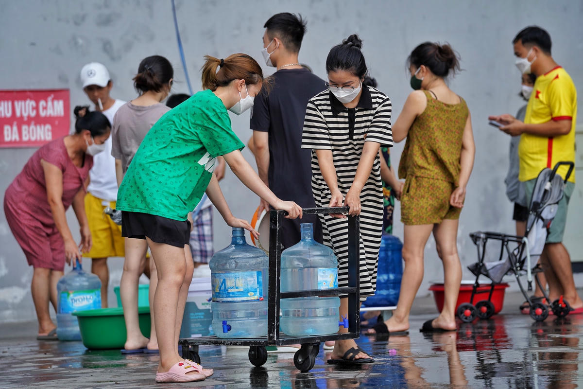 Những ngày qua, hàng nghìn hộ dân sinh sống trong chung cư Hateco Apollo Xuân Phương bị mất nước vì nhà máy nước sạch sông Đà dừng cung cấp do phát hiện vết dầu loang từ xe tải lật hôm 21/9.