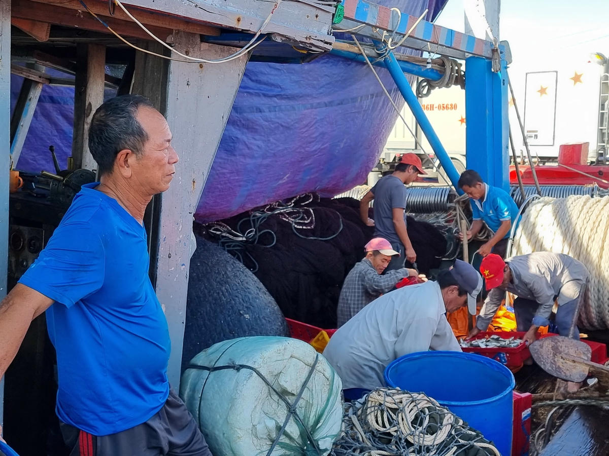 Ông Lê Dũng (65 tuổi, trú tại thị trấn Cửa Tùng - thuyền viên trên một chuyến tàu vừa cập bờ) chia sẻ, thời điểm này xăng dầu giảm giá nên ngư dân cũng có phần thuận lợi hơn.