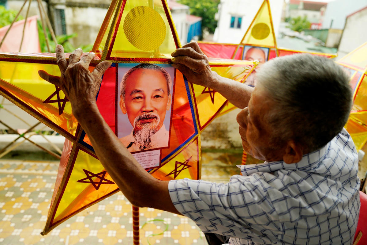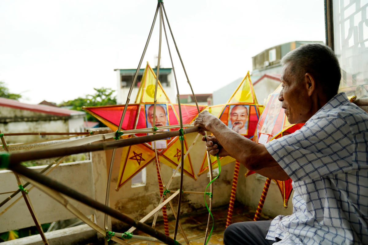 Ông Trương Viết Dũng (72 tuổi, trú tại đường Lý Tự Trọng, TP Hà Tĩnh) đã có đến hơn 30 năm làm đèn Trung thu. Ông bắt tay vào nghề này khi đời sống của phần lớn người dân đang gặp khó khăn, đồ chơi Trung thu còn rất hiếm.Từng có thời gian ở trong quân ngũ, chiến đấu trên các chiến trường rồi trở về quê, trải qua nhiều nghề nhưng với tình yêu thương con trẻ và tấm lòng đau đáu khi nghĩ về ký ức của những mùa Trung thu gian khó, từ năm 1990, ông Dũng bắt đầu làm các loại đèn Trung thu thủ công cho đến nay. Mỗi dịp Trung thu, căn nhà nhỏ của ông trở thành xưởng sản xuất đèn, đa phần là đèn ông sao. Vừa làm ông vừa rút kinh nghiệm để chiếc đèn ông sao ngày càng tinh xảo, đẹp mắt... Để hoàn thiện được một chiếc đèn ông sao phải trải qua rất nhiều công đoạn như vót tre, dựng khung, cắt dán giấy trang trí… nhưng theo ông, khó nhất là dựng khung.Theo ông, để chiếc đèn bền đẹp, người làm phải chọn được tre tốt, già và các loại giấy bóng kính, giấy dán được tìm lựa cẩn thận. Đặc biệt, tất cả những đèn ông sao do ông làm ra ở giữa đèn không thể thiếu hình Bác Hồ. Theo ông Dũng, sinh thời Bác Hồ rất yêu thương thiếu niên nhi đồng nên ông muốn làm những chiếc đèn ông sao luôn có hình ảnh của Bác, để Bác luôn sống trong lòng dân tộc và thiếu nhi Việt Nam.Ngoài những chiếc đèn ông sao rực rỡ sắc màu, ông Dũng còn tìm kiếm những nguyên liệu thân thiện với môi trường như: tre nứa, bìa carton... để làm đèn cá. Đây là loại đèn được ông Dũng thêm một số ý tưởng sáng tạo như vây cá, mắt cá có thể cử động khiến trẻ con rất yêu thích.Mỗi ngày ông làm tới 10-12 tiếng đồng hồ, có khi mải miết quên cả ăn trưa. Vì làm một mình nên một ngày ông chỉ làm được 2-3 chiếc đèn ông sao cỡ vừa. Với loại đèn cá, ông tốn nhiều thời gian hơn, khoảng một ngày mới hoàn thiện xong tất cả các khâu.Cũng chính vì lòng đam mê và nhiệt huyết với nghề mà nhiều năm nay, ngôi nhà của ông đã trở thành địa chỉ quen thuộc cho những người tìm mua đèn Trung thu truyền thống.Hơn 30 năm gắn bó với nghề nhưng không phải năm nào đèn Trung thu truyền thống cũng đắt hàng. Tuy nhiên, bằng niềm đam mê và mong muốn gìn giữ nét văn hóa truyền thống, chưa bao giờ ông có ý định từ bỏ nghề làm đèn lồng truyền thống.Mỗi mùa Trung thu, ông Dũng có thể bán được từ 40 đến 60 chiếc đèn loại 1 m đến 1,5 m với giá từ 300 nghìn đến 500 nghìn đồng mỗi chiếc.
