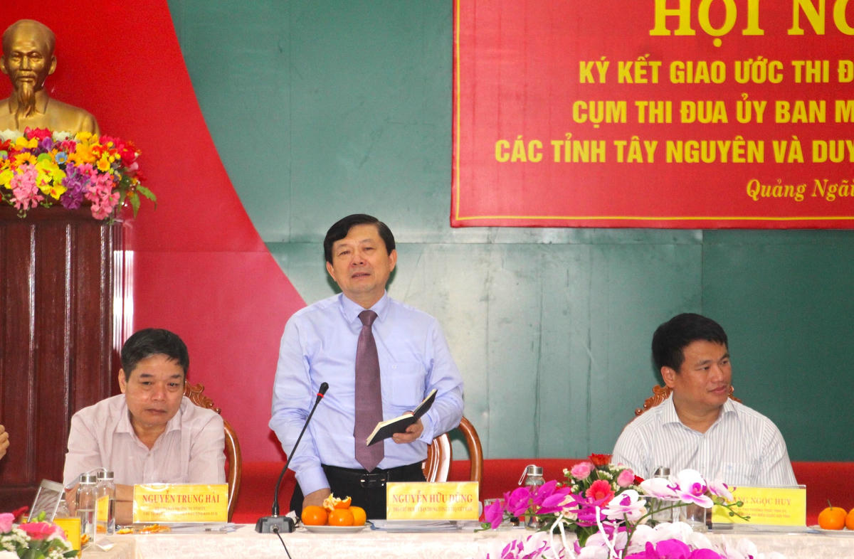 Sáng 19/4, tại TP Quảng Ngãi, tỉnh Quảng Ngãi đã diễn ra Hội nghị ký kết giao ước thi đua Cụm thi đua Ủy ban MTTQ Việt Nam các tỉnh Tây Nguyên và Duyên Hải miền Trung năm 2023. Ông Nguyễn Hữu Dũng, Phó Chủ tịch UBTƯ MTTQ Việt Nam, Phó Chủ tịch Hội đồng Thi đua - Khen thưởng UBTƯ MTTQ Việt Nam dự và chỉ đạo Hội nghị.
