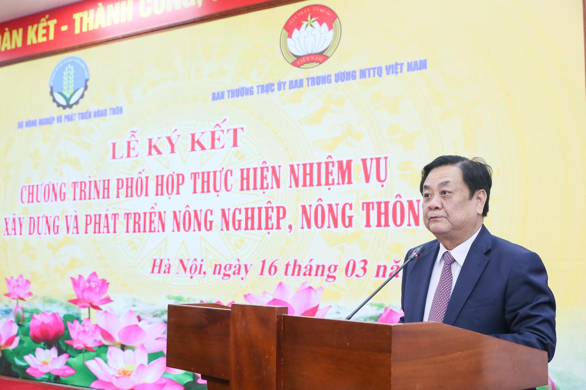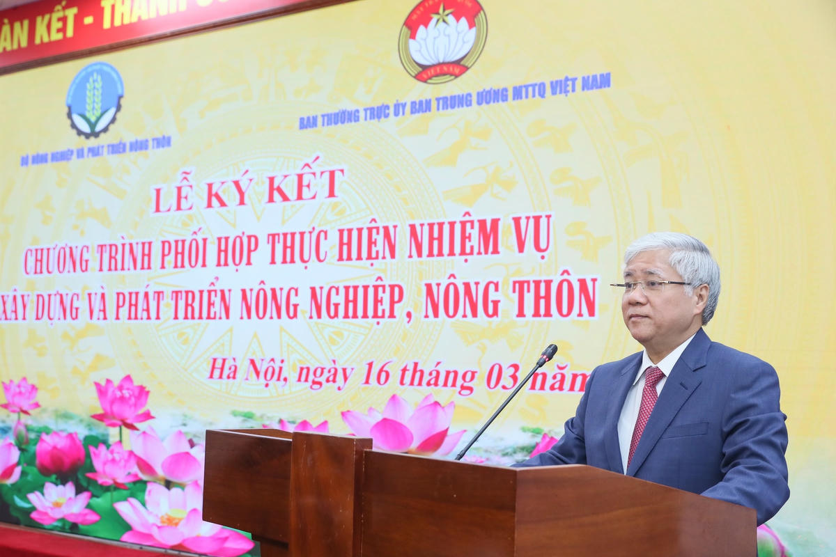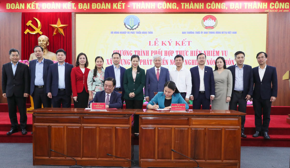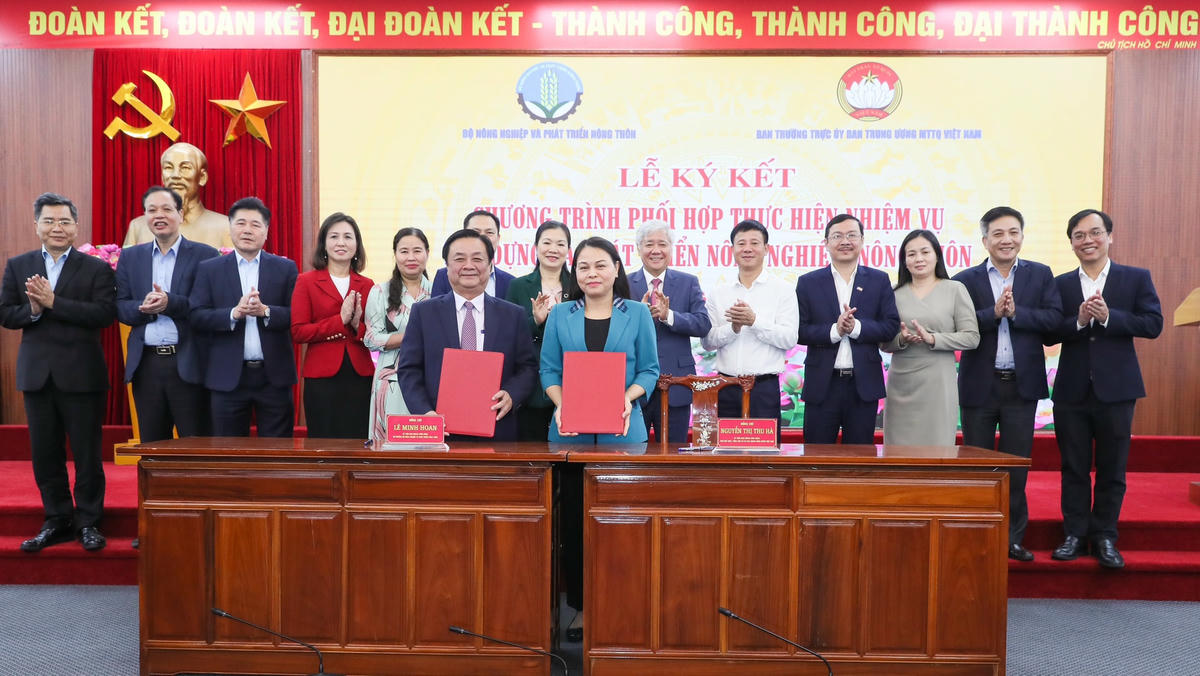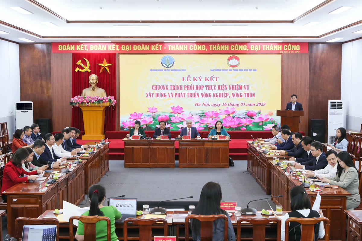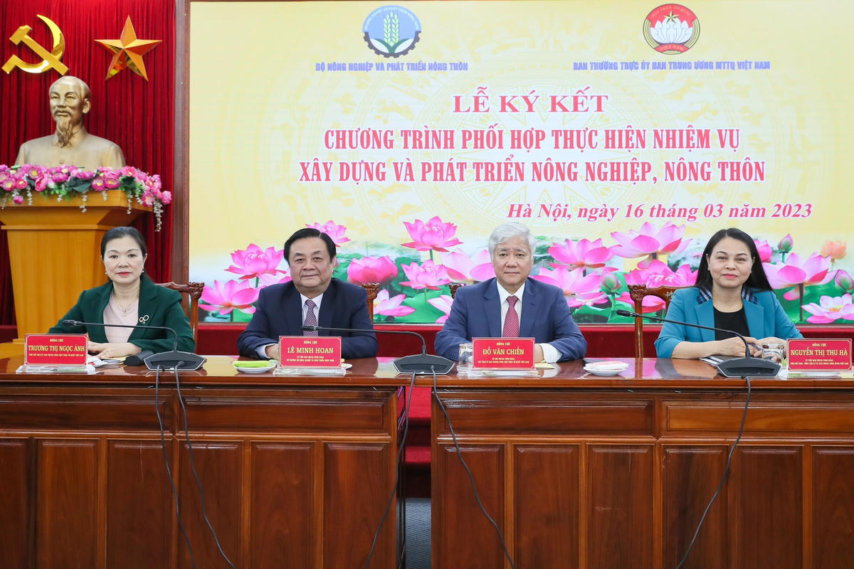 Chủ trì Lễ ký kết có ông Đỗ Văn Chiến, Bí thư Trung ương Đảng, Chủ tịch UBTƯ MTTQ Việt Nam; bà Nguyễn Thị Thu Hà, Ủy viên Trung ương Đảng, Phó Chủ tịch – Tổng Thư ký UBTƯ MTTQ Việt Nam; ông Lê Minh Hoan, Ủy viên Trung ương Đảng, Bộ trưởng Bộ NN&PTNT; bà Trương Thị Ngọc Ánh, Phó Chủ tịch UBTƯ MTTQ Việt Nam.