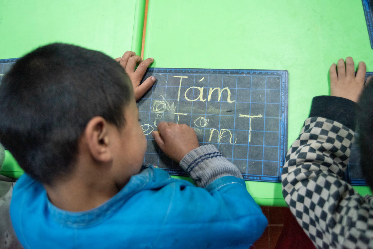 Đều đặn vào mỗi 6h sáng, cô giáo Hoàng Thị Biên (giáo viên công tác tại điểm Trường Mầm non thôn Sui Thầu) lại đồng hành cùng “chiến mã” của mình vượt hơn 50 km từ nhà đến trường. Vì nhà ở trung tâm huyện mỗi lần đến trường, cô lại tiện ghé qua chợ mua thêm chút đồ ăn cho bữa trưa của trẻ hoặc đồ người dân ở trên nhờ. Vào mùa khô, việc đi lại của các cô giáo tương đối thuận lợi vì một số cung đường đã được trải bê tông. Nhưng vào những ngày có mưa, để vượt qua con đường này sẽ là một "cuộc chiến" của những nữ giáo viên nơi đây. Đường đi lên dốc cao và trơn không thể vừa dắt bộ vừa đi, cô cùng đồng nghiệp phải gửi xe ở nhà dân cách đấy 3 km để đi bộ đến trường. Có tiền sử bệnh thoái hoá đốt sống lưng, mỗi lần đi qua đoạn gập ghềnh sỏi đá lại là những lần cô cắn răng chịu đựng cơn đau. Chiếc xe máy của cô giáo luôn ở trong tình trạng lấm lem bùn đất.7h sáng, điểm trường vẫn chìm trong “biển mây” sương mù. Điểm trường mới được sửa sang và khánh thành lại vào tháng 6/2021. Hiện tại có tổng cộng 51 học sinh đang theo, chia ra thành 3 lớp học ghép 24-36 tháng, 3-4 tuổi, 5 tuổi dưới sự phụ trách giảng dạy bởi 4 cô giáo và 1 thầy điều dưỡng. Một ngày đi học sẽ bắt đầu từ 8h sáng đến 16h chiều, các em nghỉ giữa trưa ăn cơm tại trường.Với sự tài trợ bởi các tổ chức từ thiện xã hội, từ gian nhà trình tường đơn sơ, điều kiện cơ sở vật chất thiếu thốn, luôn trong tình trạng ẩm mốc mỗi khi mùa mưa hay trời lạnh, nay đã được cải thiện thành lớp học khang trang sạch sẽ, có phòng học và khu sinh hoạt chung rộng rãi.Trường được tài trợ thêm không gian chơi ngoài trời vậy nên mỗi ngày tới trường với các em là một ngày vui.Những nụ cười giòn tan của các em học sinh khi có sân chơi mới.Giờ học chữ Kinh của các em học sinh Nùng tại trường. Cô Hoàng Thị Minh Chuyên, phụ trách lớp 5 tuổi chia sẻ, đối với học sinh độ tuổi này yêu cầu phải thành thạo tiếng phổ thông, nhận biết các mặt chữ và biết cách cầm bút tô trên mình. Công tác giảng dạy tiếng phổ thông cũng gặp nhiều bất đồng liên quan đến ngôn ngữ, bản thân cô cũng là người dân địa phương nên nhiều lúc phải thật kiên nhẫn vì các em vẫn đang còn tuổi vô tư hồn nhiên. Từ đó phải có phương pháp học riêng cho các em để phù hợp với phong tục ở trên này..Do đặc điểm địa hình đất dễ sạt lở, nên một bên bậc thang của lớp học đã bị xuống cấp. Cô Biên đã nhờ trưởng thôn liên lạc với các hộ để giúp đỡ nhà trường tân trang lại khuôn viên và nhận được sự hưởng ứng nhiệt tình của người dân.Buổi lao động diễn ra vào sáng Chủ nhật, với sự tham gia đầy đủ của người dân trong thôn, trong đó bao gồm phụ huynh có con em theo học tại ngôi trường. Thời điểm này đã là 11h trưa, nhưng các cô vẫn giữ thái độ tích cực, động viên nhau cùng hoàn thành công việc.