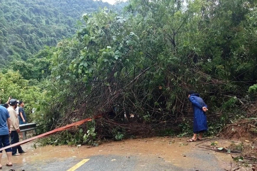 Hai nữ giáo viên tại huyện Tương Dương (Nghệ An) đang trên đường đi dạy về, khi đi qua một quả đồi, bất ngờ đất đá từ phía trên sạt lở xuống, vùi lấp vào lan can đường, may mắn được người dân và đồng nghiệp đi cùng cứu sống.