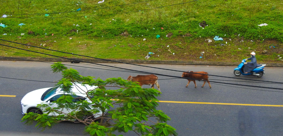 Tuy nhiên, những ngày đầu tháng 4/2023, chúng tôi ghi nhận tình trạng bò thả rông gây mất an toàn giao thông, mất mỹ quan, ảnh hưởng đến sinh hoạt của hàng trăm hộ dân ở phường Hòa Minh vẫn tồn tại và tăng số lượng - bất chấp quy định cấm chăn thả gia súc của UBND TP Đà Nẵng.