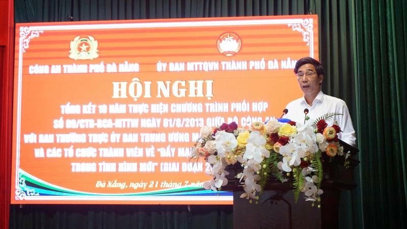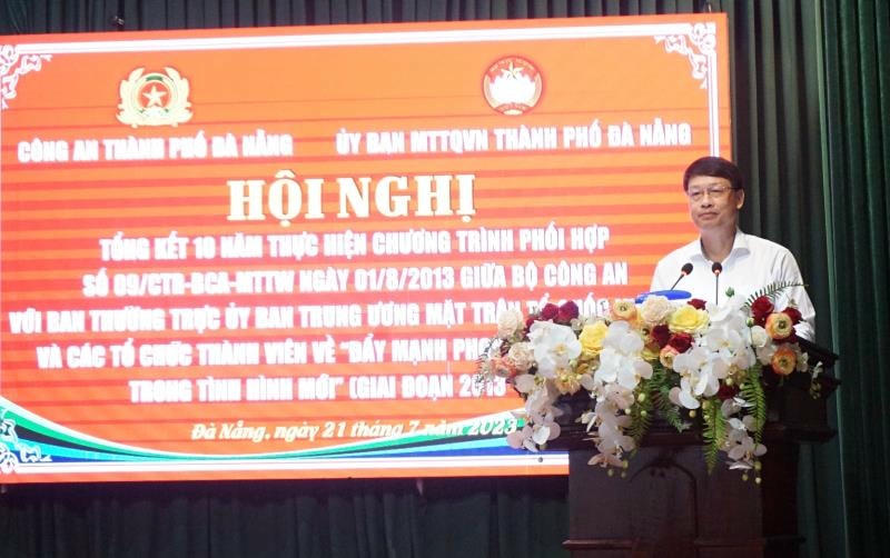 Phát biểu tại hội nghị, Phó Chủ tịch UBND thành phố Đà Nẵng Trần Chí Cường ghi nhận: Sau 10 năm thực hiện Chương trình phối hợp (số 09/CTr-BCA-MTTW); vai trò, trách nhiệm của các cấp ủy Đảng, chính quyền và cả hệ thống chính trị trong bảo đảm an ninh chính trị, trật tự, an toàn xã hội ở Đà Nẵng được nâng cao, góp phần ngăn chặn, đẩy lùi và kiềm chế hoạt động của các loại tội phạm.