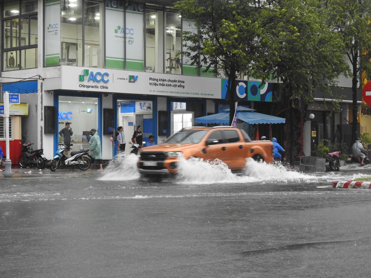 Sáng 14/10, một số tuyến đường khu vực trung tâm Đà Nẵng như 2 tháng 9, Nguyễn Văn Linh, Lý Thái Tổ…, vẫn bị ngập cục bộ. Nhiều vị trí trên tuyến đường Tôn Đức Thắng còn ngập sâu.